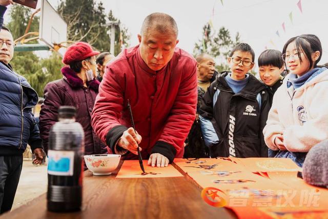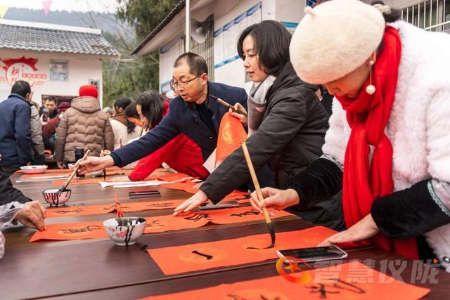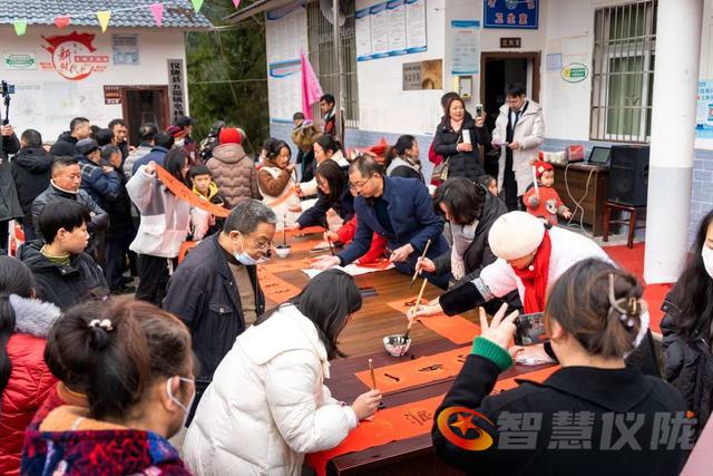 中国书法家协会会员、四川省书法家协会理事、四川蓝天书画院院长蓝天果,四川省书法家协会会员、四川蓝天书画院副院长胡方斌,中国书法家协会会员,四川省书法家协会理事,南充市文联原党组书记兼常务副主席李永平,中国书法家协会会员、南充女书法家联盟主席吴小英,南充市书法家协会会员、南充市诗词楹联协会主席何春林,中国书法家协会会员、仪陇县书法家协会主席等20名书法家和五福镇皂桷村村民近100人参加了写春联活动。四川大道文化公司还给大家带来了精彩的文艺表演。