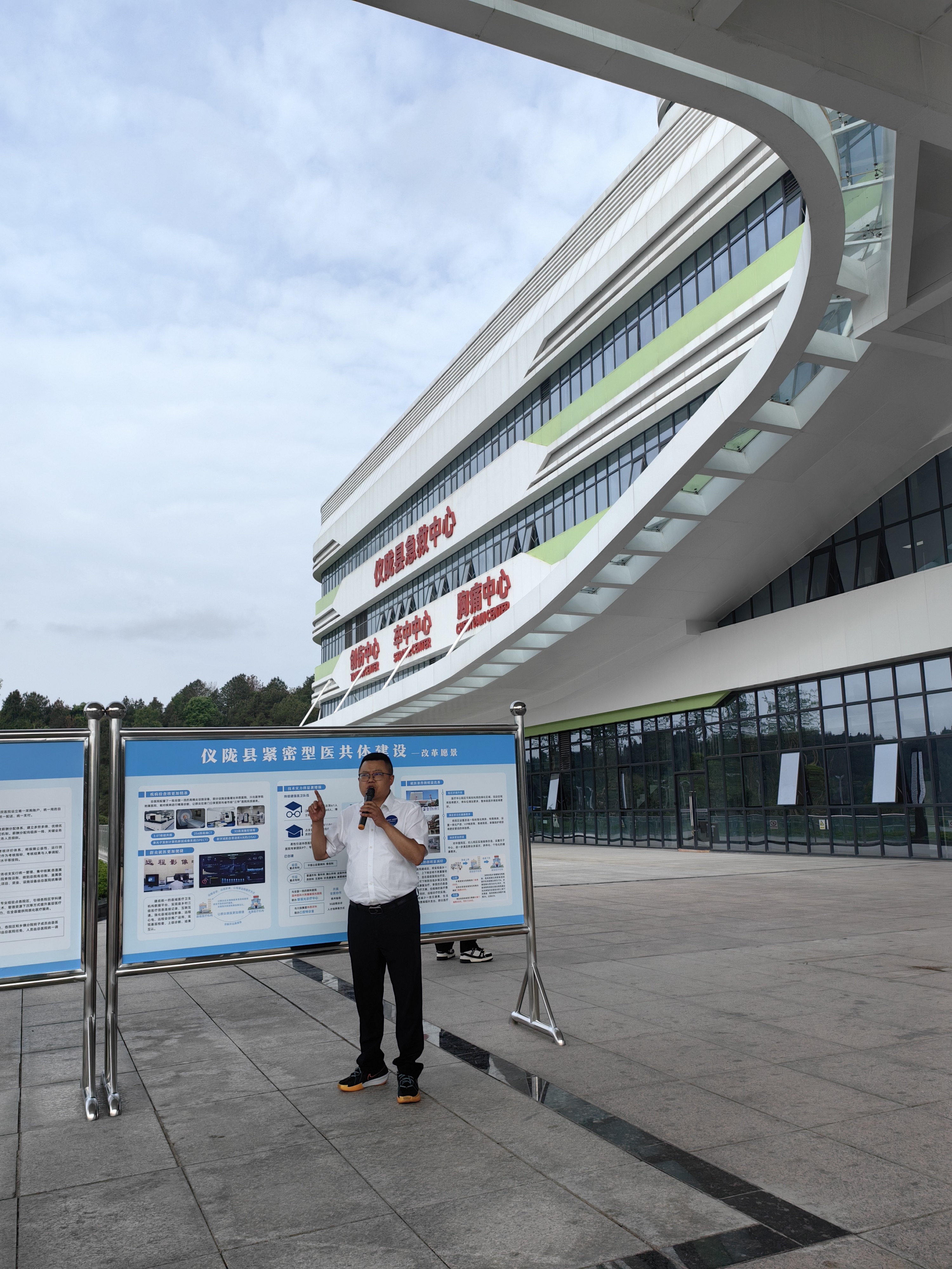 在门诊大楼前,仪陇县总医院党委副书记 杨忠明给我们上了一节“改革课”。他介绍了仪陇县深入实施医疗资源优化提升行动,加快推进紧密型县域医共体建设,根据县乡差异化布局,形成“一院五区、一核两翼多点”的医疗服务体系,配置一批全国一流的高精尖设施设备,更好地满足老百姓就医需求,全力实现“小病不出乡、大病不出县”的“健康仪陇”目标。大家通过实地参观,听取了相关科室负责人的介绍,对总医院有了更全面的了解。