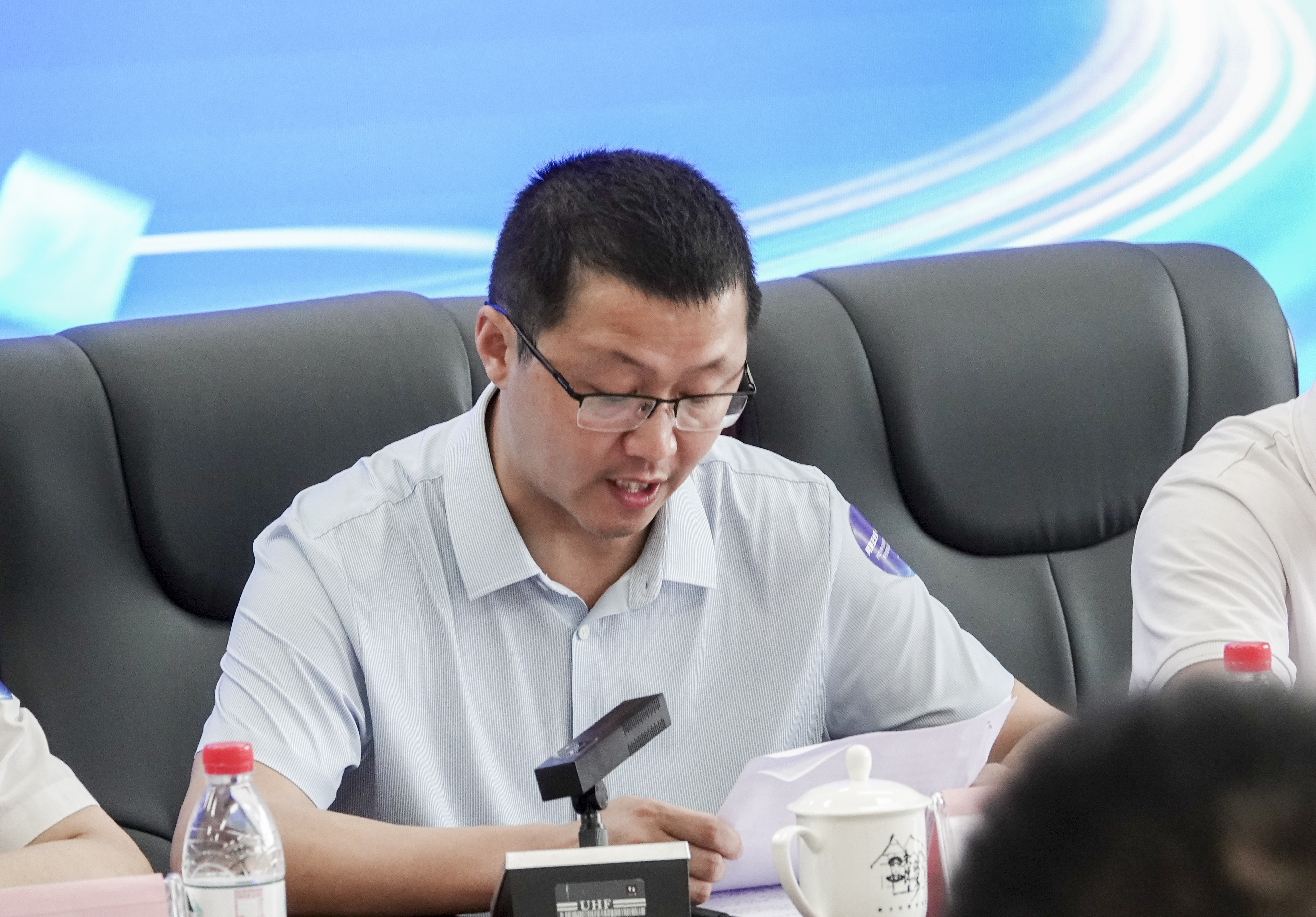 来到总医院会议大厅,参加了总结表彰大会,大会上宣传部副部长张杰、融媒体中心主任田越、融媒体总编张斌、医院院长张忠明等领导作了重要讲话,表彰了新闻工作突出的网管以及摄影师,激励他们再立新功。