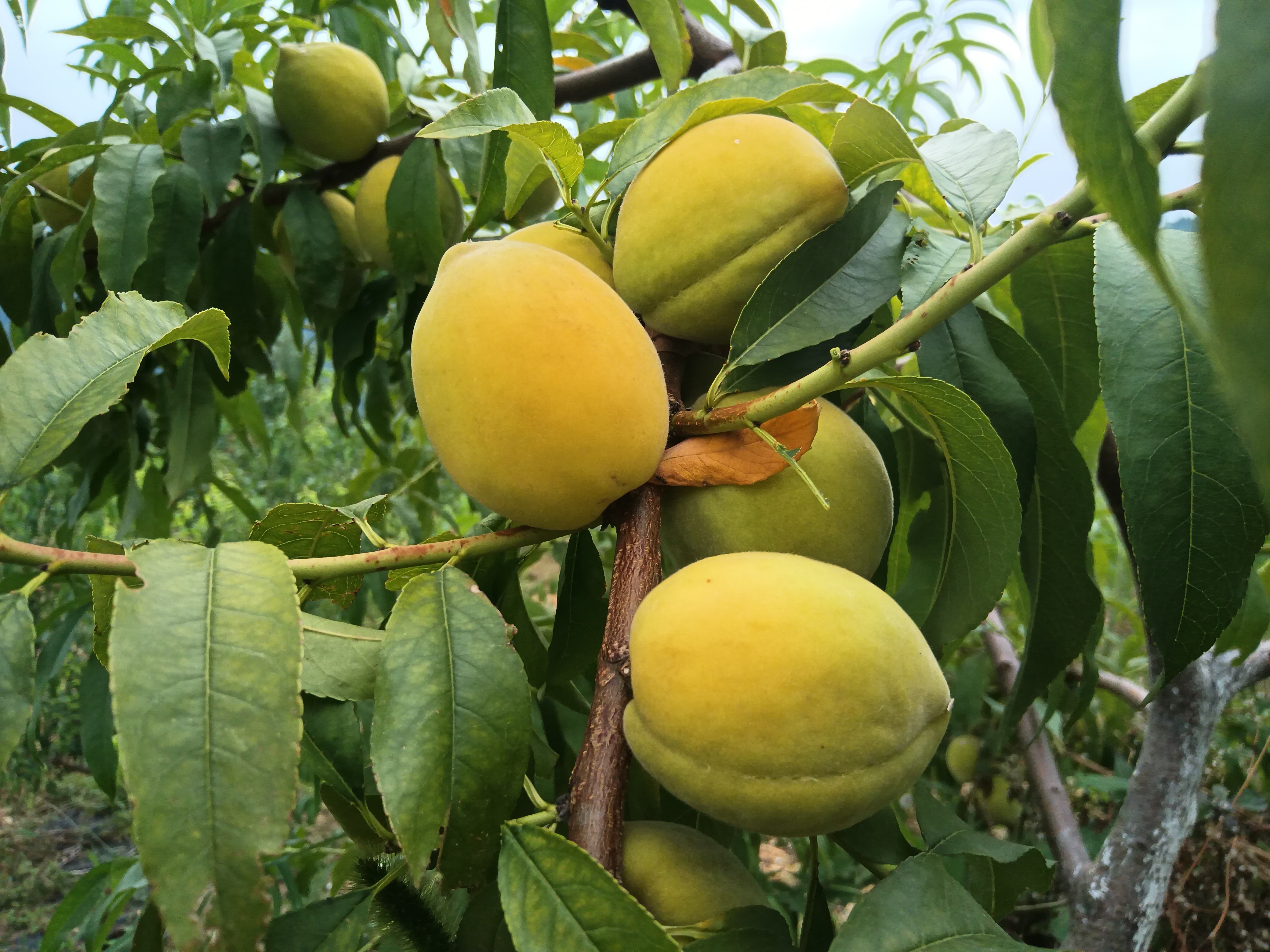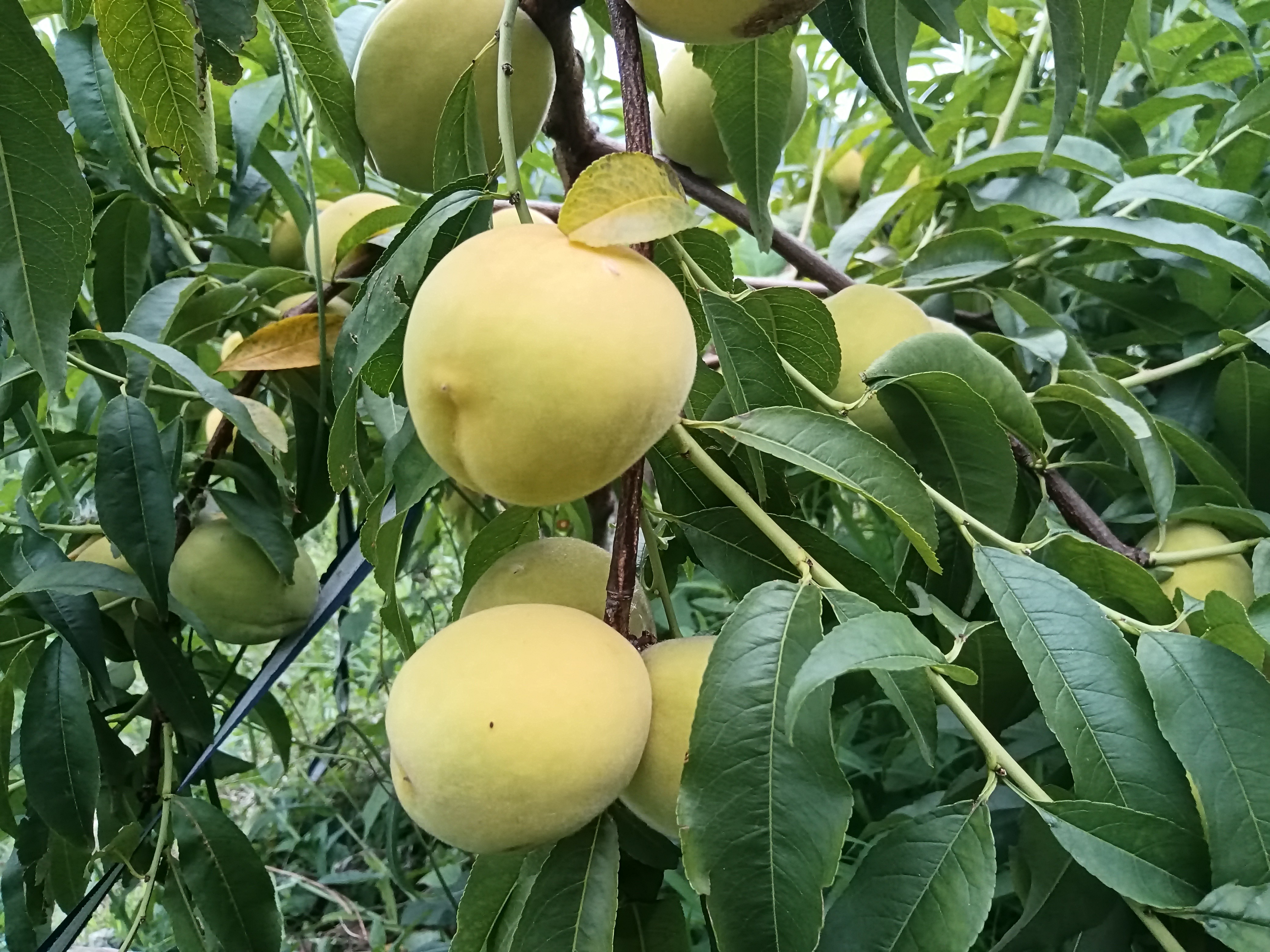 笔者今天拍摄到的确是黄桃,说实在的,这种黄桃我还是第一次见到。黄桃表皮金黄,果实硕大,听果园老板介绍,这种黄桃虽然没有红桃美观,可黄桃果肉清脆香甜,要胜过红桃一筹,因而拍来√