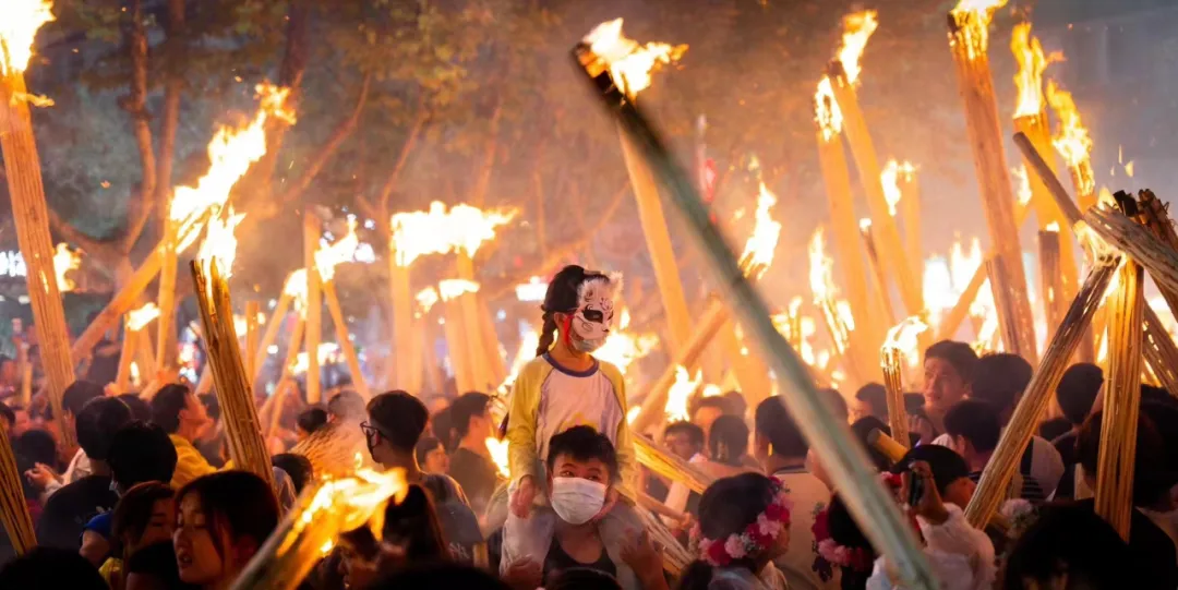 手持象征着和平美好的火把