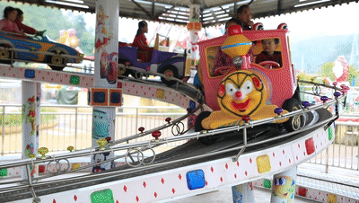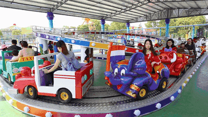 载着孩子在轨道上飞奔