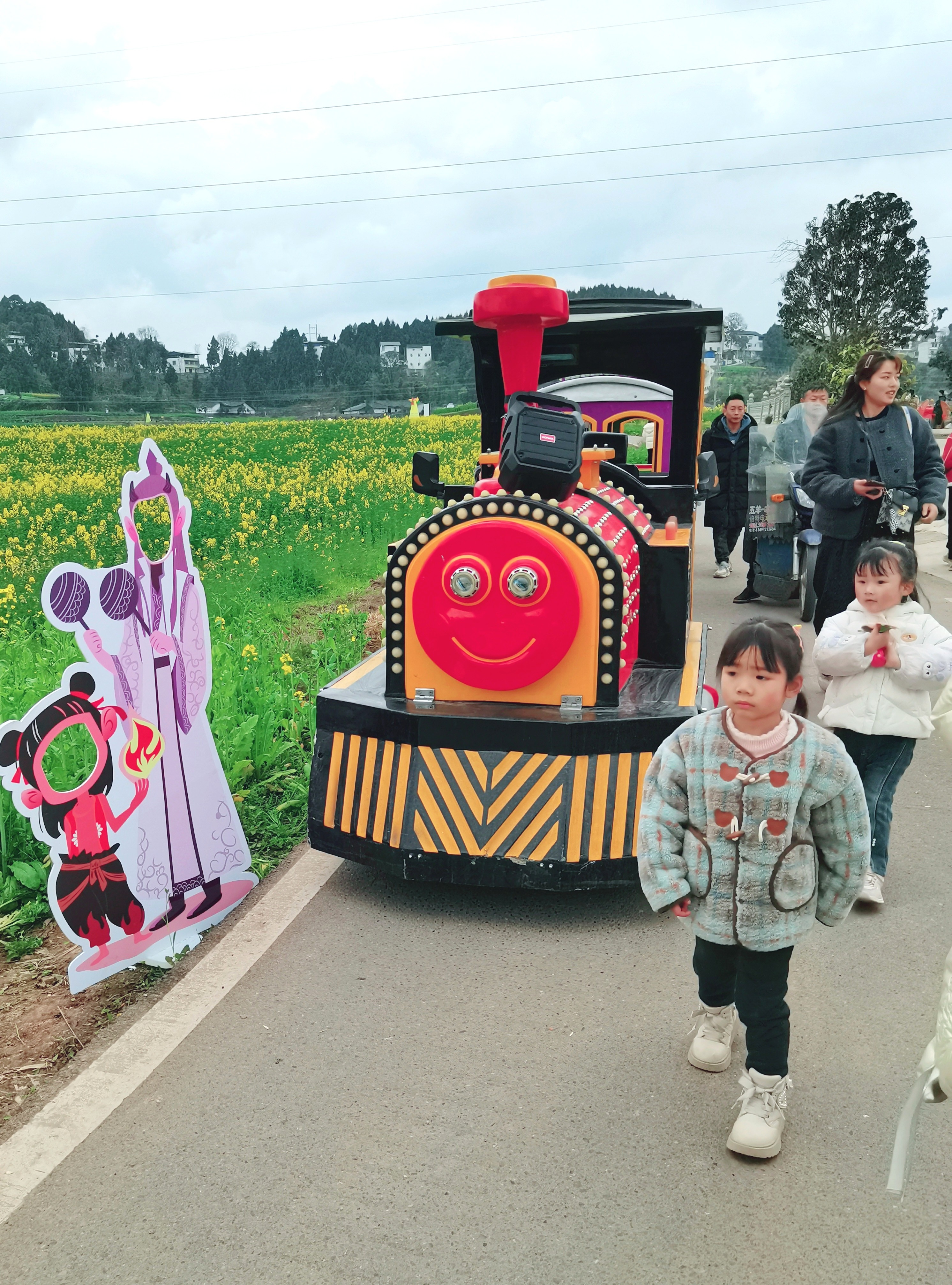 游客乘座小火车游玩