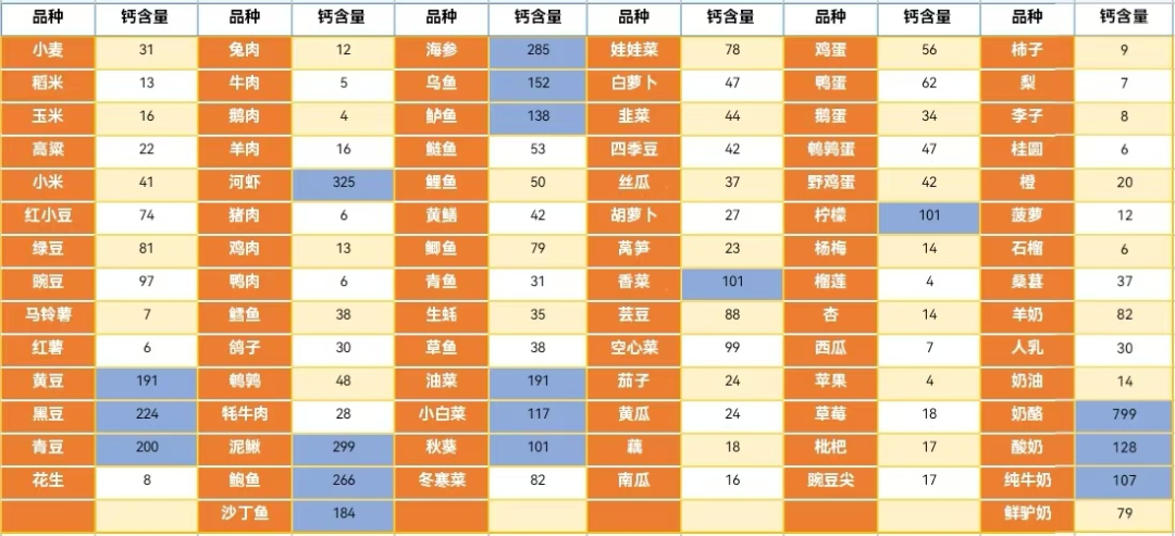 中国居民常见食物中的元素钙含量