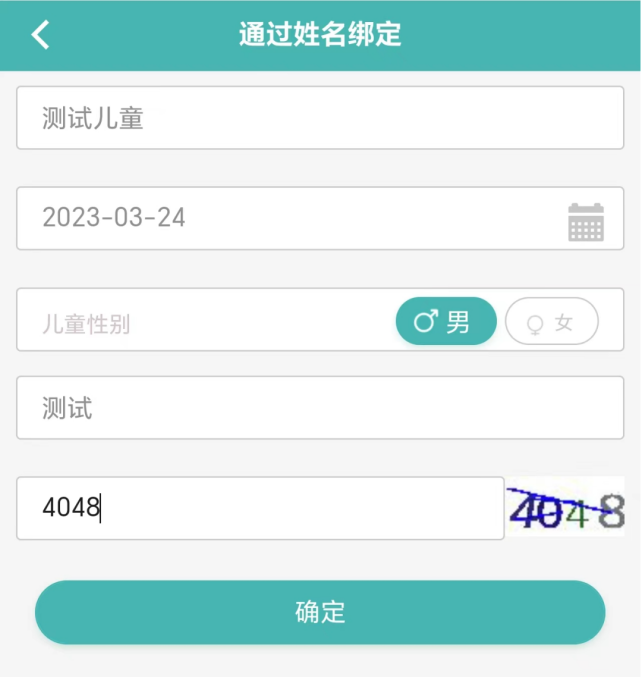 进入公众号首页【儿童服务】模块,点击“添加儿童”,输入儿童相关信息,点击“确定”绑定个案。