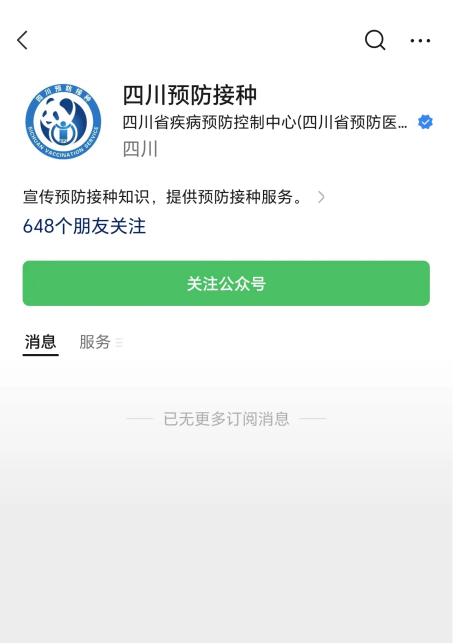 在微信上搜索“四川预防接种”公众号并添加关注。