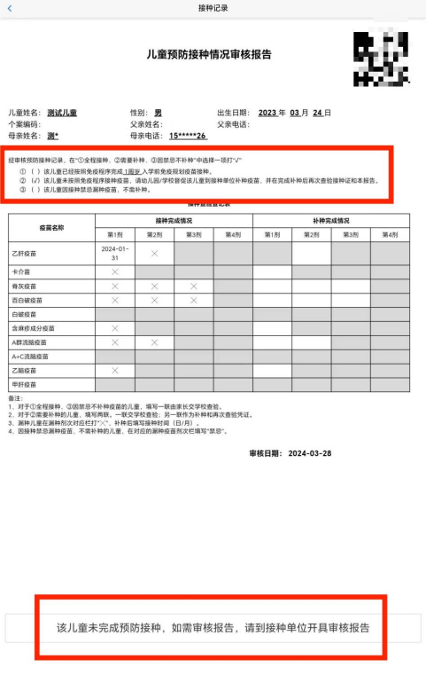 ② 未完成全部疫苗接种的儿童,需前往接种门诊补种未完成疫苗,再开具审核报告。
