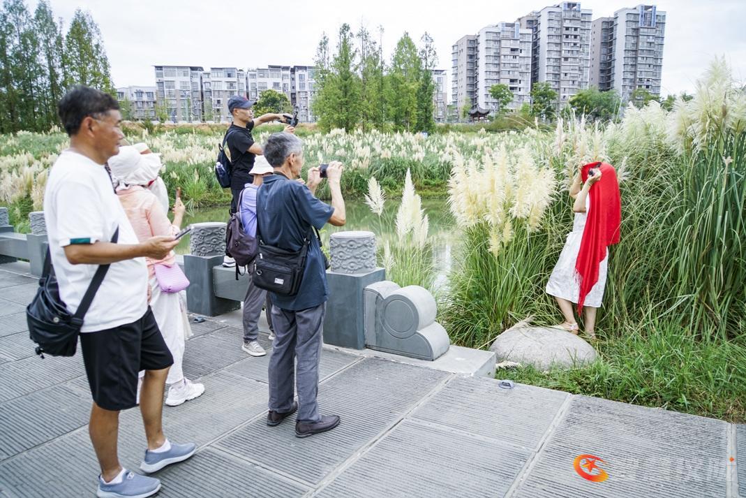 会员们纷纷掏出相机、手机和无人机,从不同角度捕 芦苇花的灵动之美。有的俯身贴近芦苇丛,拍摄特写;有的操控无人机航拍全景;还有的借助光影变化,创作出富有意境的摄影作品。