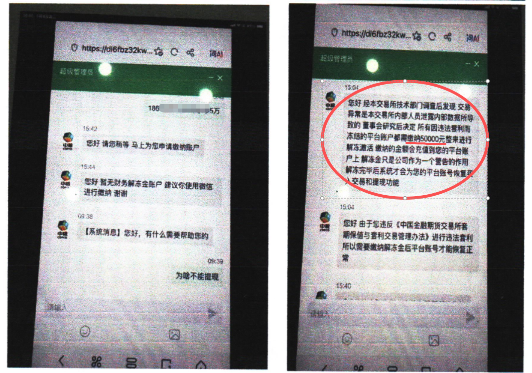 郑女士见账户收益上涨却无法提现,便按客服要求支付10万元“解冻金”进行“账号解冻”,但仍无法提现。于是其又按客服指引充值5万元解冻金,账户虽解冻但依然无法提现。