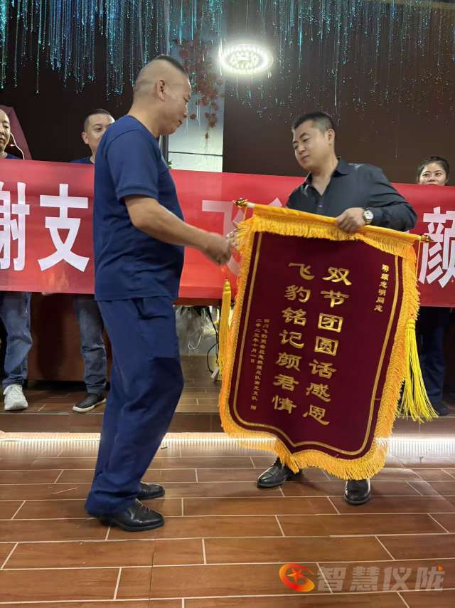在双节同庆之际,四川飞豹南充支队举行了隆重的庆祝活动,在庆祝活动中,特邀了爱心人士颜志明同志莅临。颜志明同志是一位好心人,热心人,他一贯关心关爱四川飞豹南充支队的工作,并给予了大力支持和资助,为感恩这位热心人,在欢乐的庆祝活动中,特为颜志明同志赠送了锦旗,以示衷心感谢 !