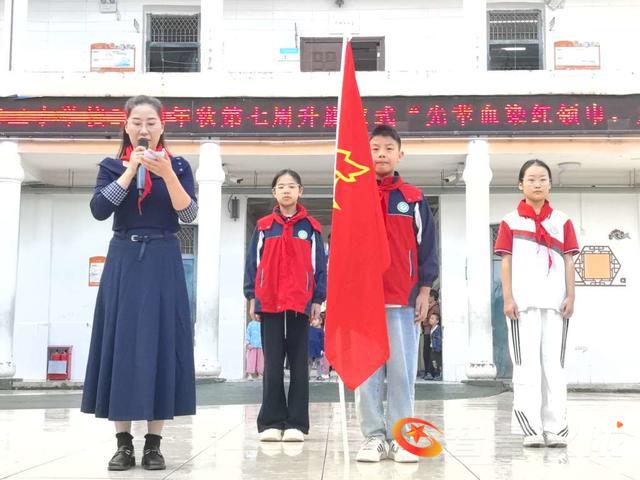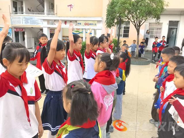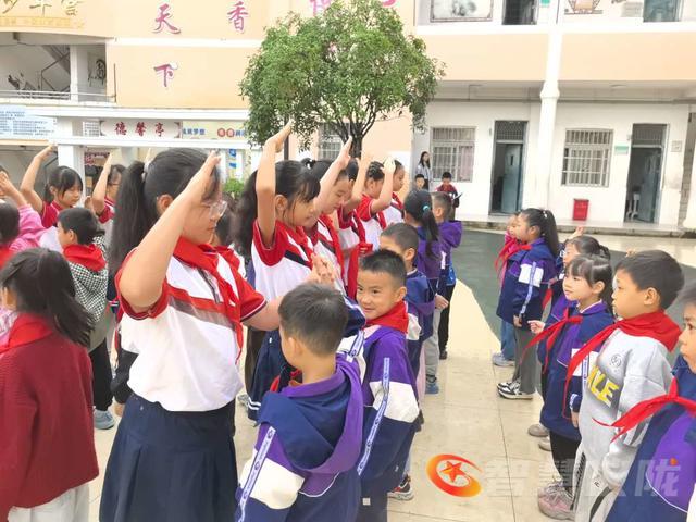 随后,全体队员整齐列队,活动正式拉开帷幕。现场齐唱队歌,嘹亮的歌声里满是少年的朝气与热忱;大队辅导员宣读新队员名单,稚嫩的脸庞上写满期待;老队员为新队员佩戴红领巾,鲜艳的红巾在胸前飘扬,也把“为共产主义事业贡献力量”的信念传递到新一代队员心中。