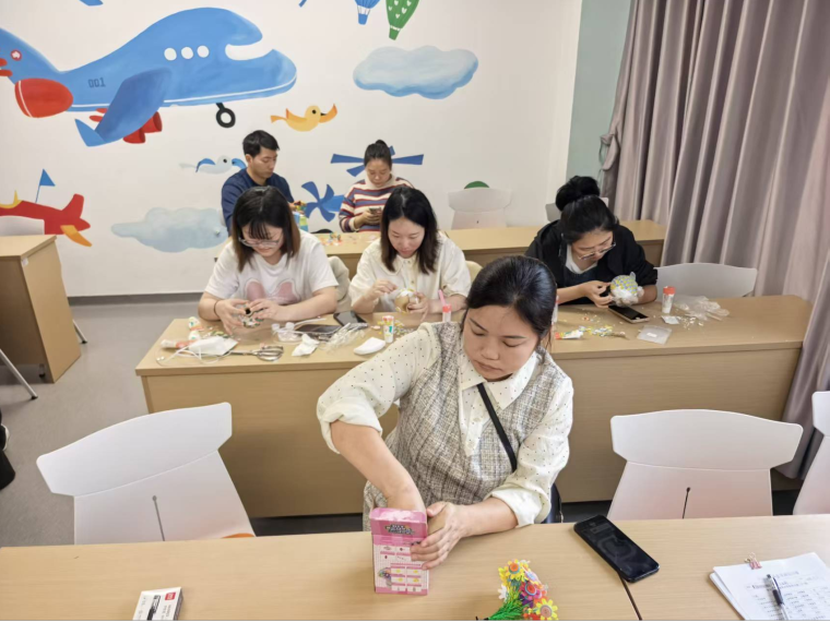活动还组织手工花瓶制作互动项目,现场提供彩色黏土、装饰配件等材料,在工作人员的指导下,孕妈妈们通过动手塑形、搭配装饰放松心情,过程中相互交流孕期感受与缓解不适的经验,为专注的课程学习增添温馨氛围。