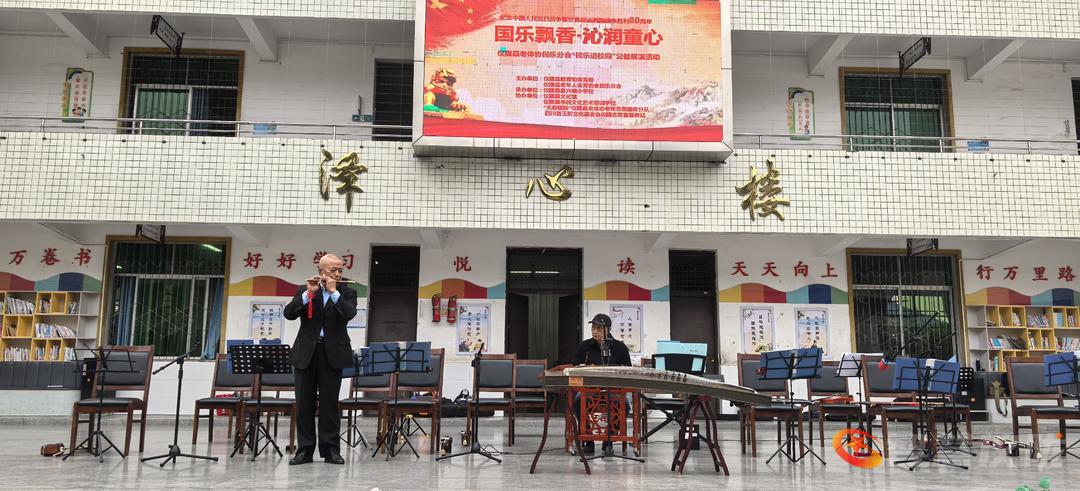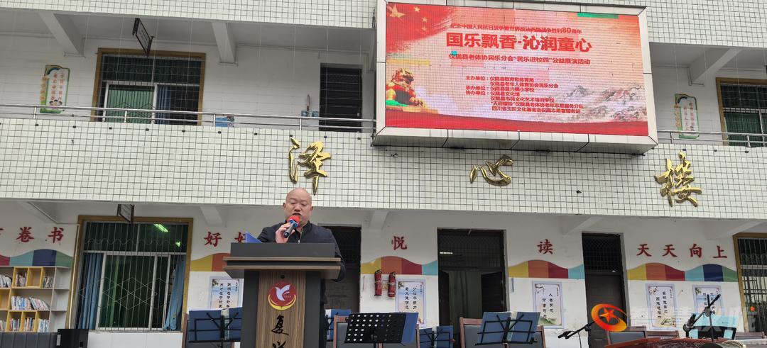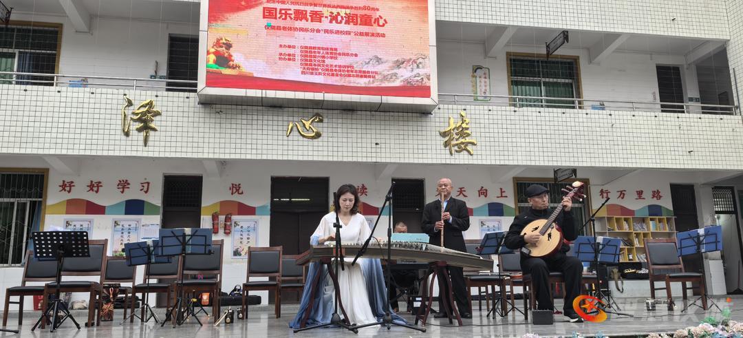 为弘扬中华优秀传统文化,纪念中国人民抗日战争暨世界反法西斯战争胜利80周年,近日,仪陇县老体协民乐分会携手仪陇县教育和体育局,在仪陇县复兴小学成功举办了一场别开生面的“民乐进校园”公益展演活动。此次活动以“国乐飘香·沁润童心”为主题,旨在通过民族音乐的魅力,提升学生的审美素养,增强文化自信,并在青少年心中播下爱国的种子。