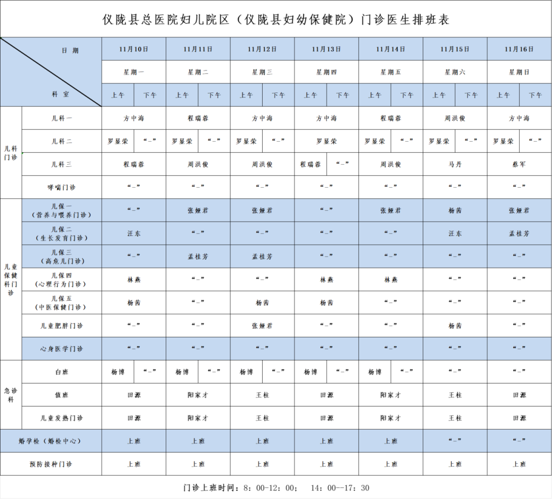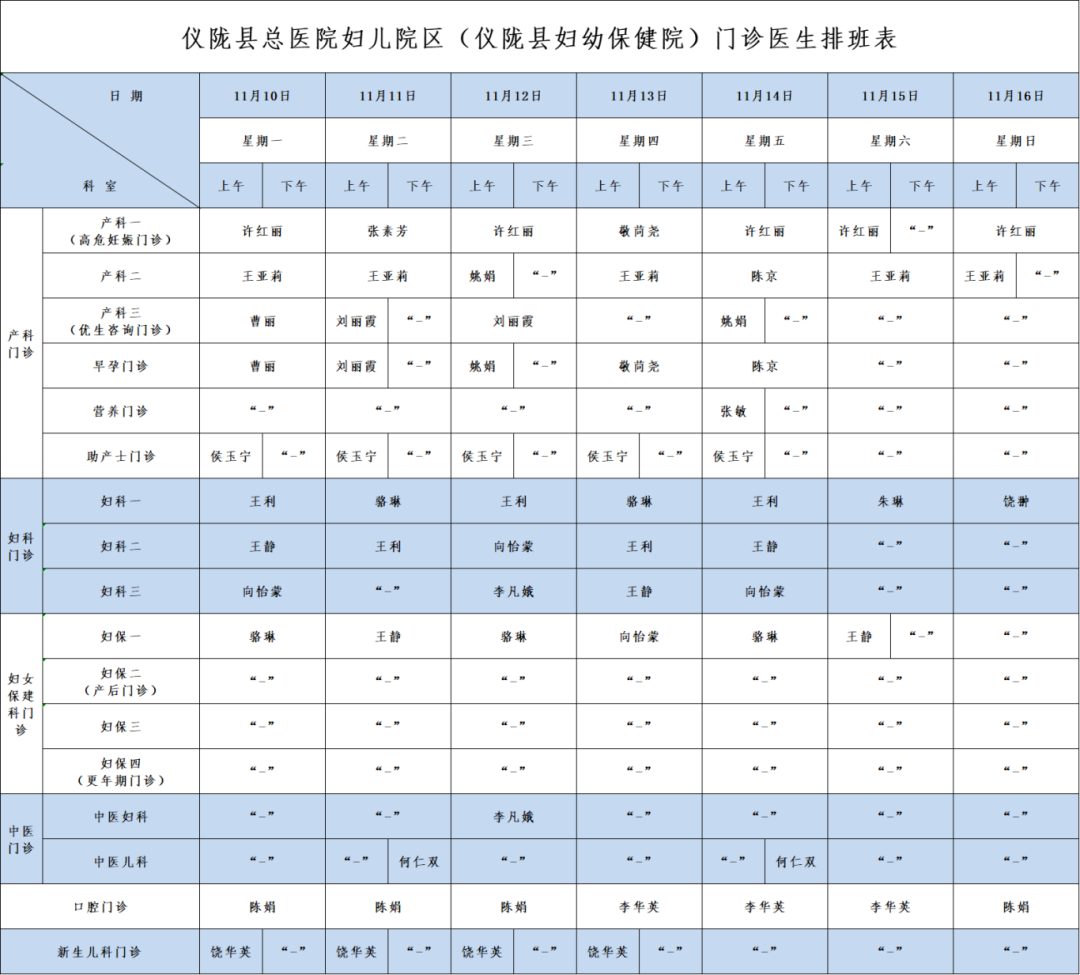 【妇幼服务】门诊医生排班表来了!(2025年11月10日-11月16日)