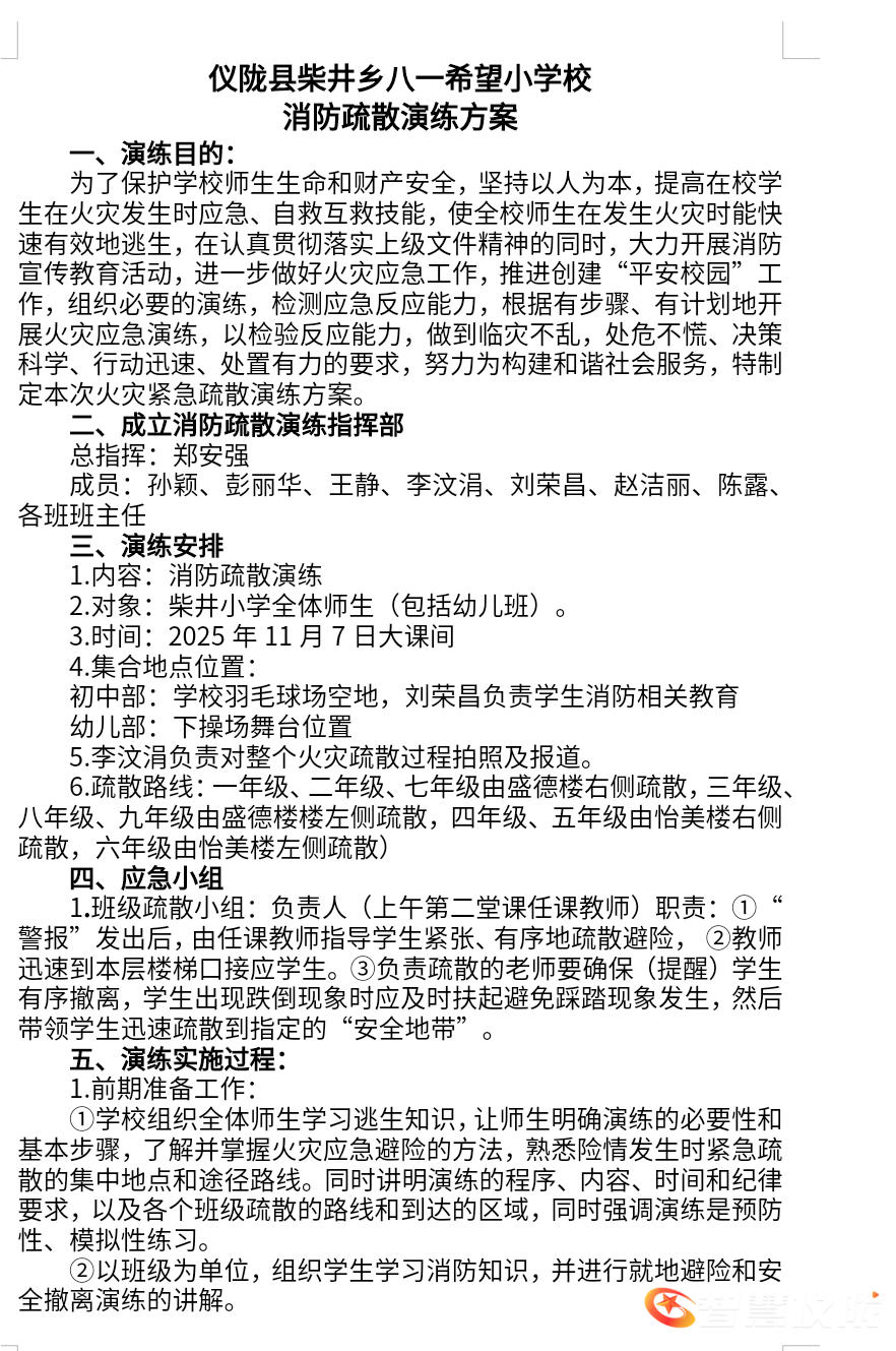 值此第34个全国消防日到来之际,为切实筑牢消防安全防线,提升全体师生及职工应急避险与自救互救能力。柴井小学于11月7日组织开展消防应急疏散演练及灭火器正确使用操作体验活动,全体师生、食堂工作人员、门岗参与此次活动。