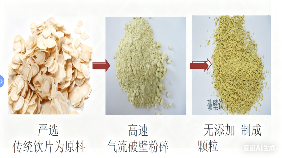 ✿核心定义:以中药材或中药饮片为原料,通过超微粉碎技术打破药材细胞壁(如植物药细胞壁、矿物药晶体结构),制成的细粉或颗粒状产品,可直接冲服、吞服或煎煮,属于“超微化加工的中药形态”。
