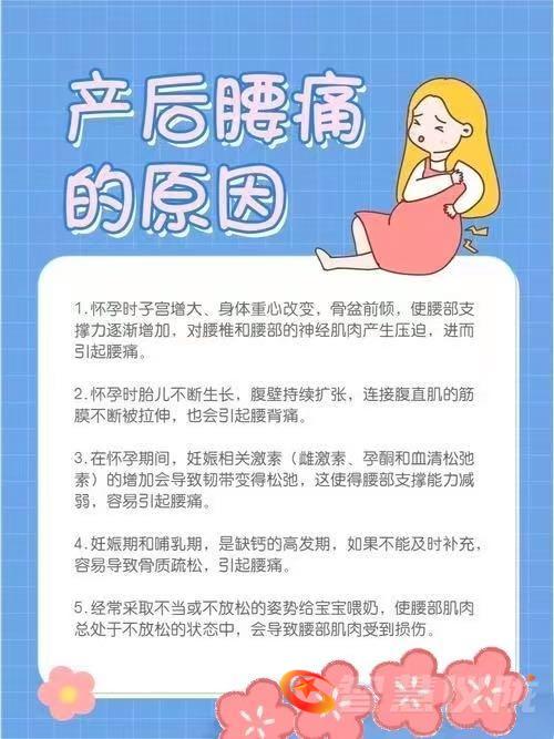 进行椎管内麻醉的操作,穿刺部位可能会有两三天的酸胀感,就如同我们手上扎针一样,针眼儿愈合后就不会有明显的不适。目前的研究表明,无论是否采用分娩镇痛,都会有部分产妇产后出现腰痛。产后应注意合理膳食、腰部保护、适量运动,同时养成良好的卫生习惯,腰痛也是可以避免的。