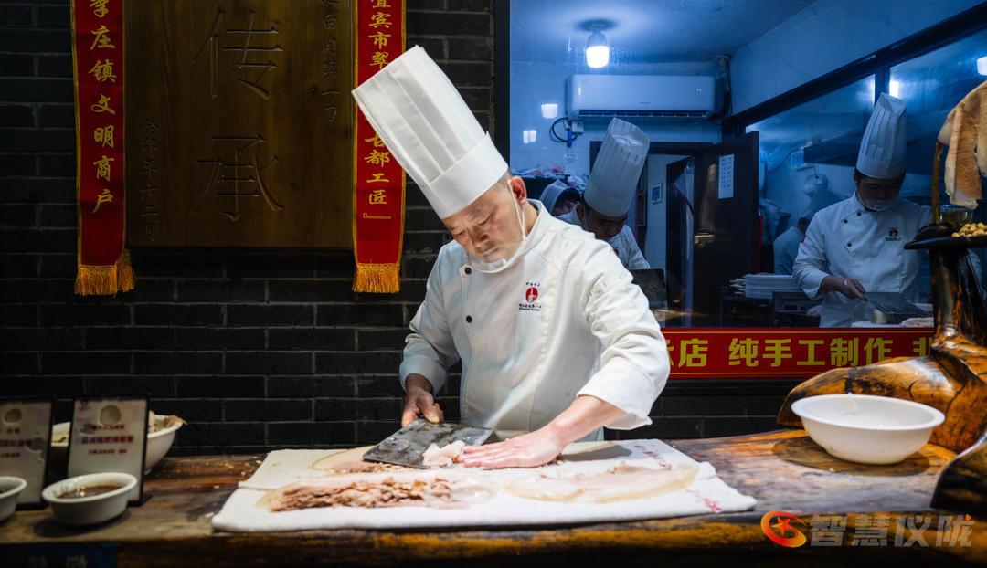 忽然,一阵诱人的香味飘来,原来是一位老师傅正在展示李庄白肉的刀工。只见他手起刀落,肉片薄如蝉翼,在阳光下晶莹剔透。妹妹看得目不转睛,我告诉她:"这刀工可是李庄的非物质文化遗产呢!"尝了一口,肉片入口即化,妹妹辣得直吐舌头,却还竖着大拇指说好吃。爷爷赶紧抓拍下我们品尝美食的可爱模样。