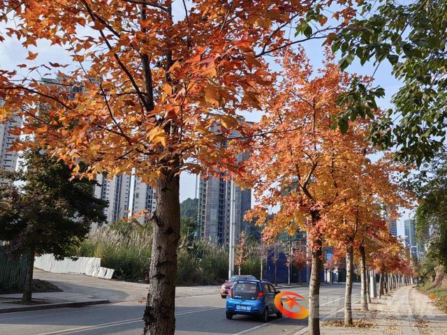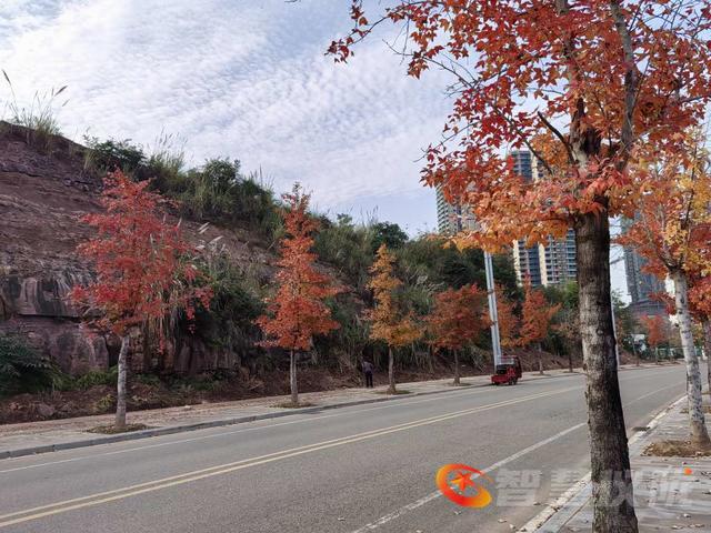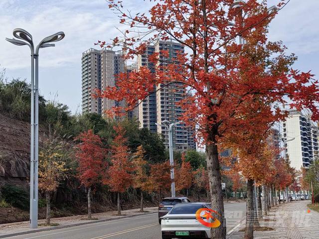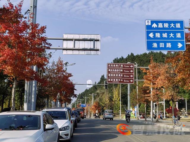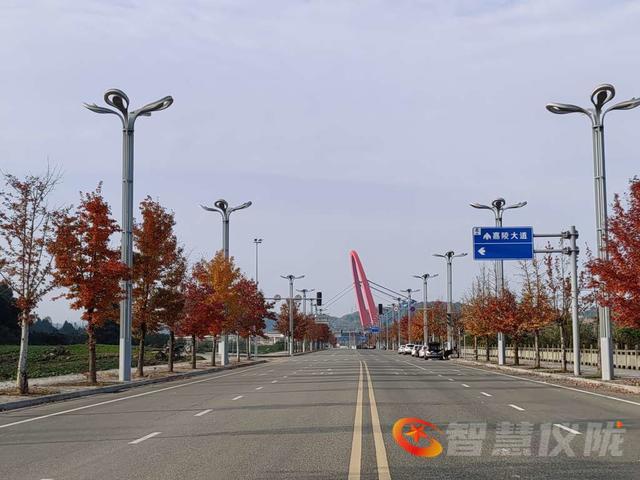 仪陇河西嘉陵大道,从南到北大约4公里的大道两旁,枫叶树象卫兵一样整齐地站列着,此时正是枫叶泛红时节,枫叶彤红一片,染红了嘉陵大道,映红了嘉陵江水,象一条鲜红的彩带紧紧系着嘉陵江,在阳光的照耀下,与高楼大厦交相映衬,形成了一道亮丽的风景线,美极了。