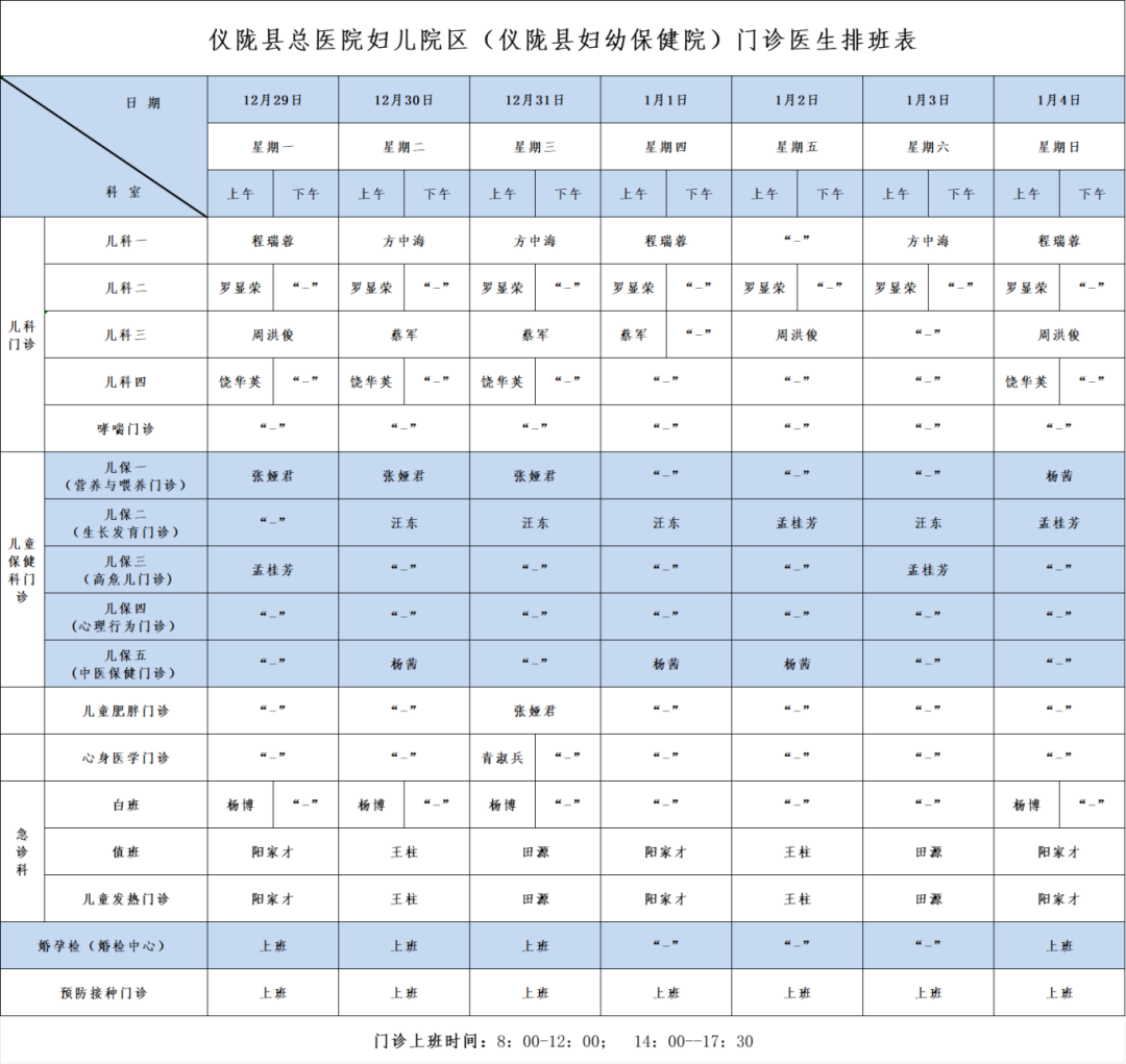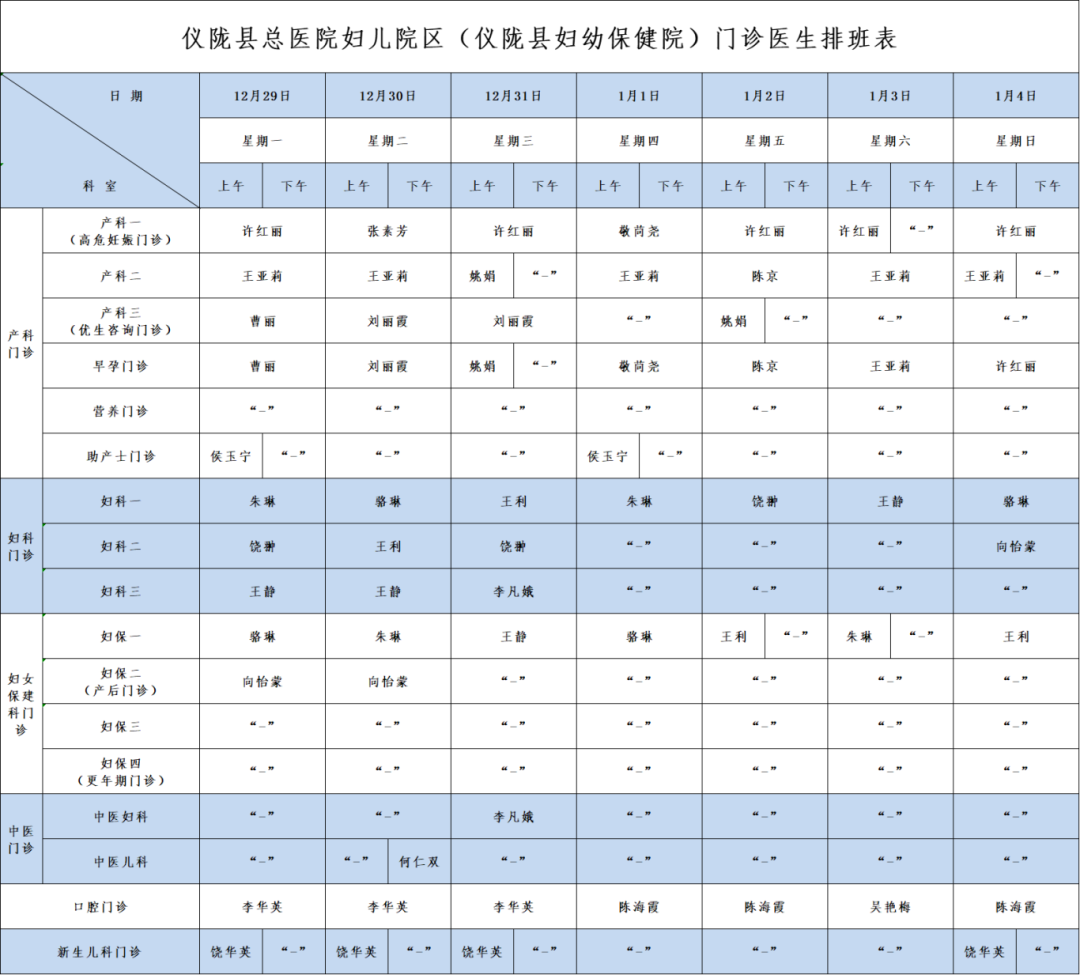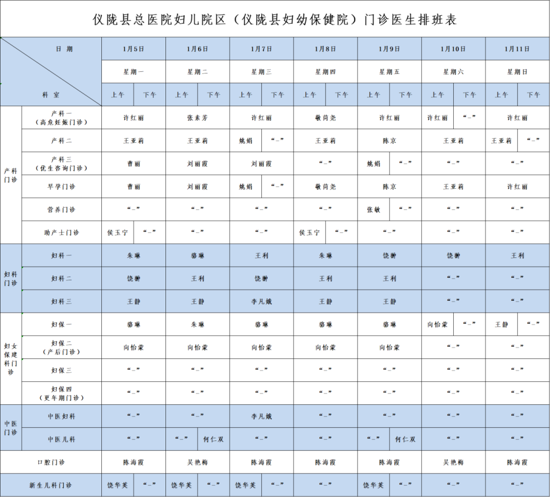 【妇幼服务】门诊医生排班表来了!(2025年12月29日-2026年1月11日)