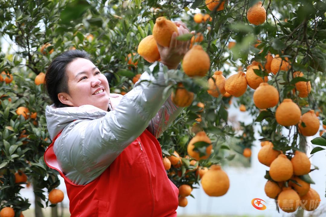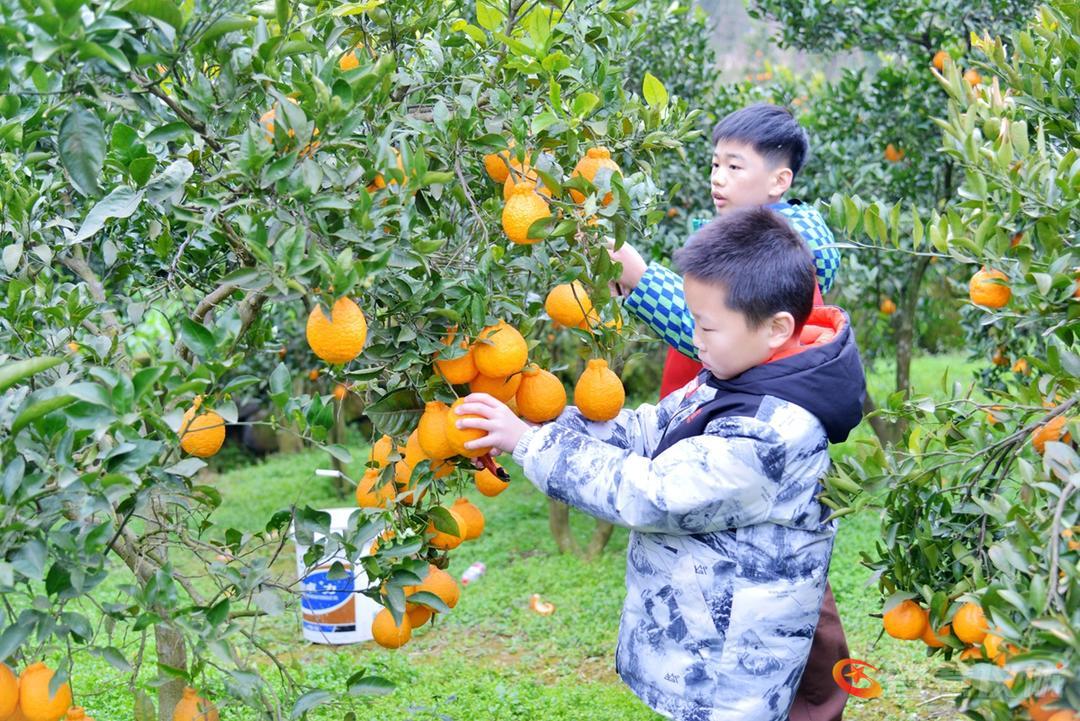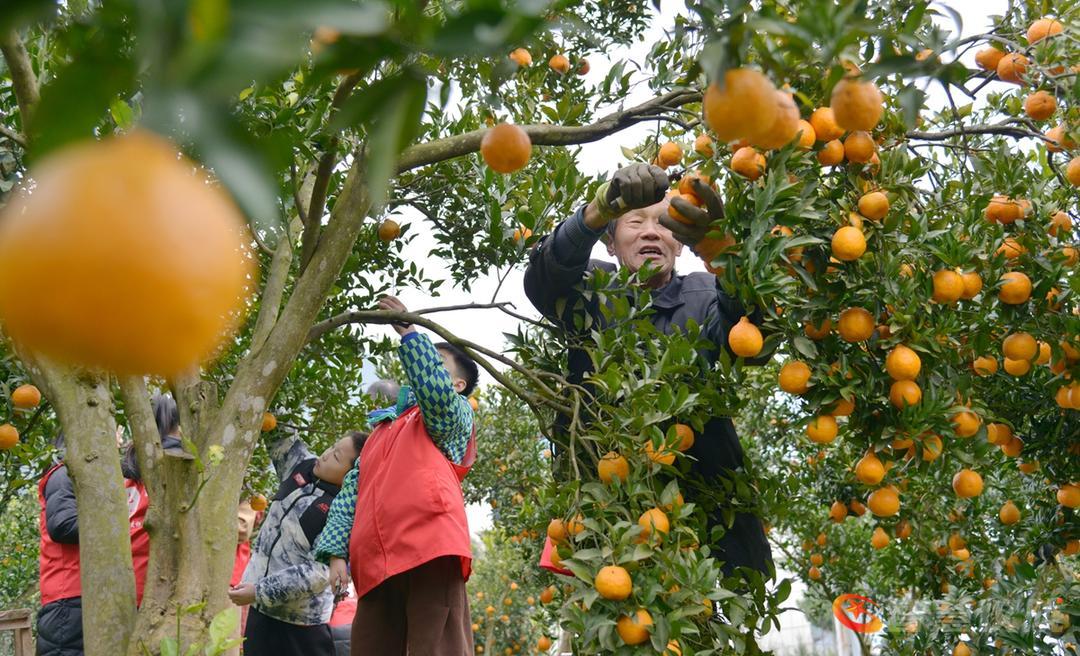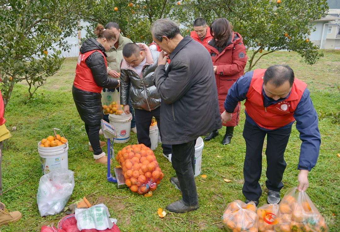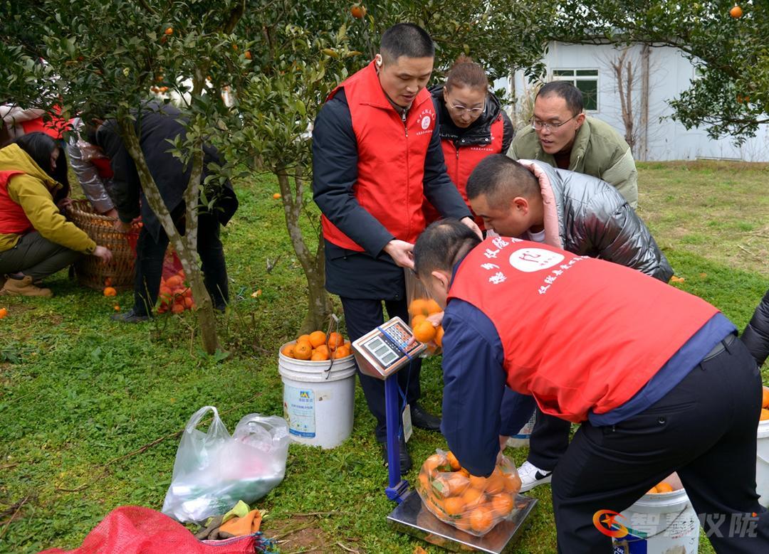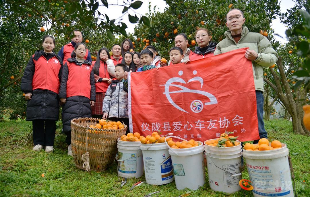 走访结束后,车队前往日兴镇白塔九湾村柑橘种植基地。果园内金黄饱满的柑橘挂满枝头、果香四溢,车友们在种植户引导下,小心翼翼采摘果实、体验农事乐趣,纷纷自费购买柑橘,以消费助农方式助力农产品销售。