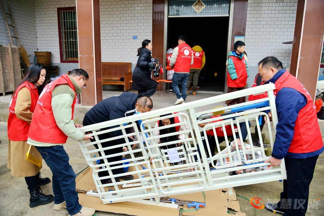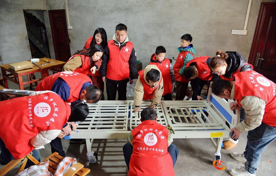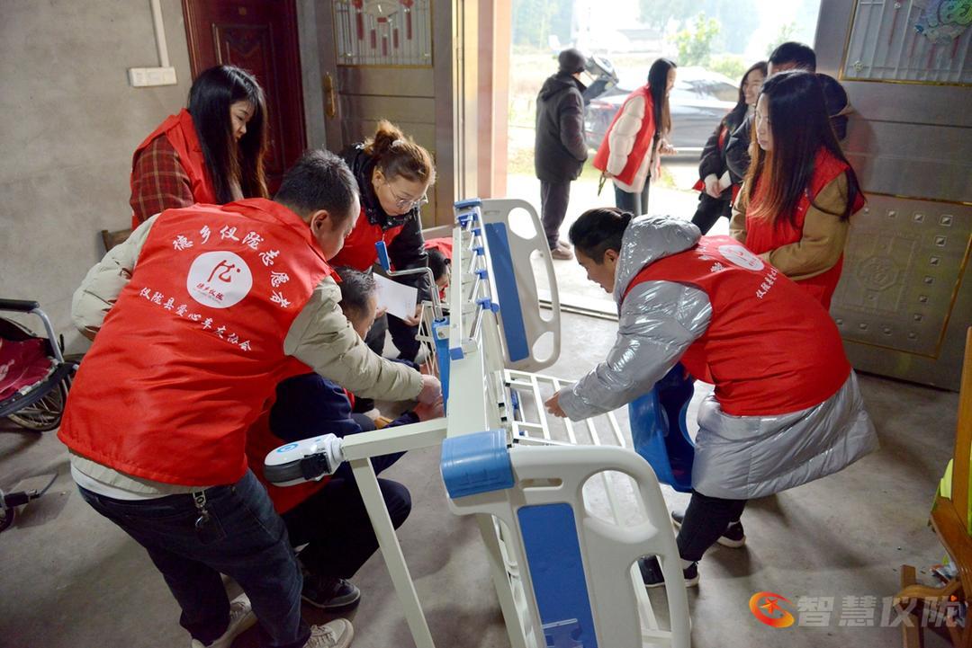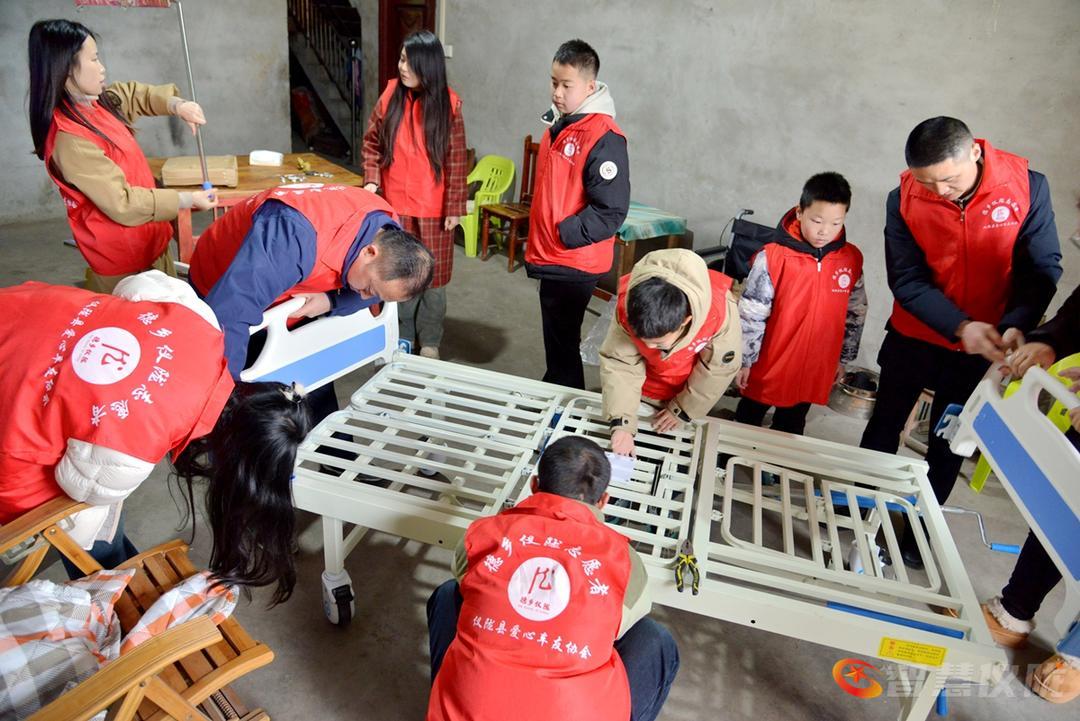 上午8时,20余名爱心车友、志愿者驾乘4辆爱心车辆集结出发,首站抵达全国“敬老爱老助老模范人物”蓝玉良家中。志愿者们齐心协力卸下医疗护理床,分工协作完成安装调试,同时送上米、油、春联、福字等新春慰问品,关切询问老人身体状况,传递真挚新春祝福,摄影组用镜头定格下一幕幕暖心瞬间。
