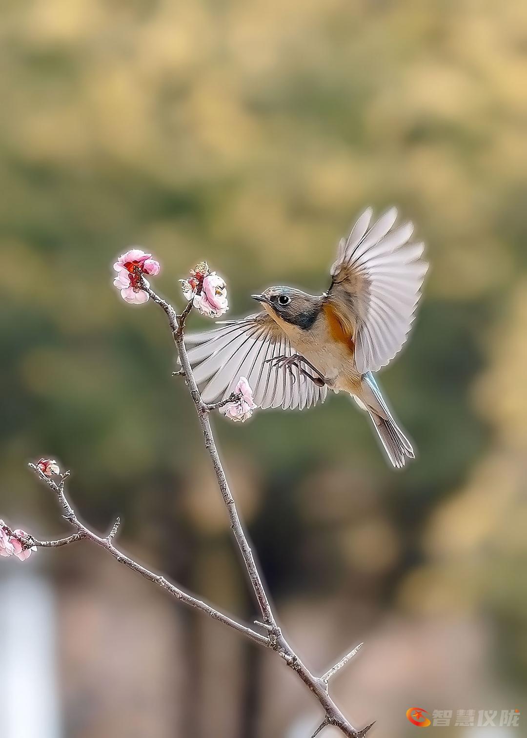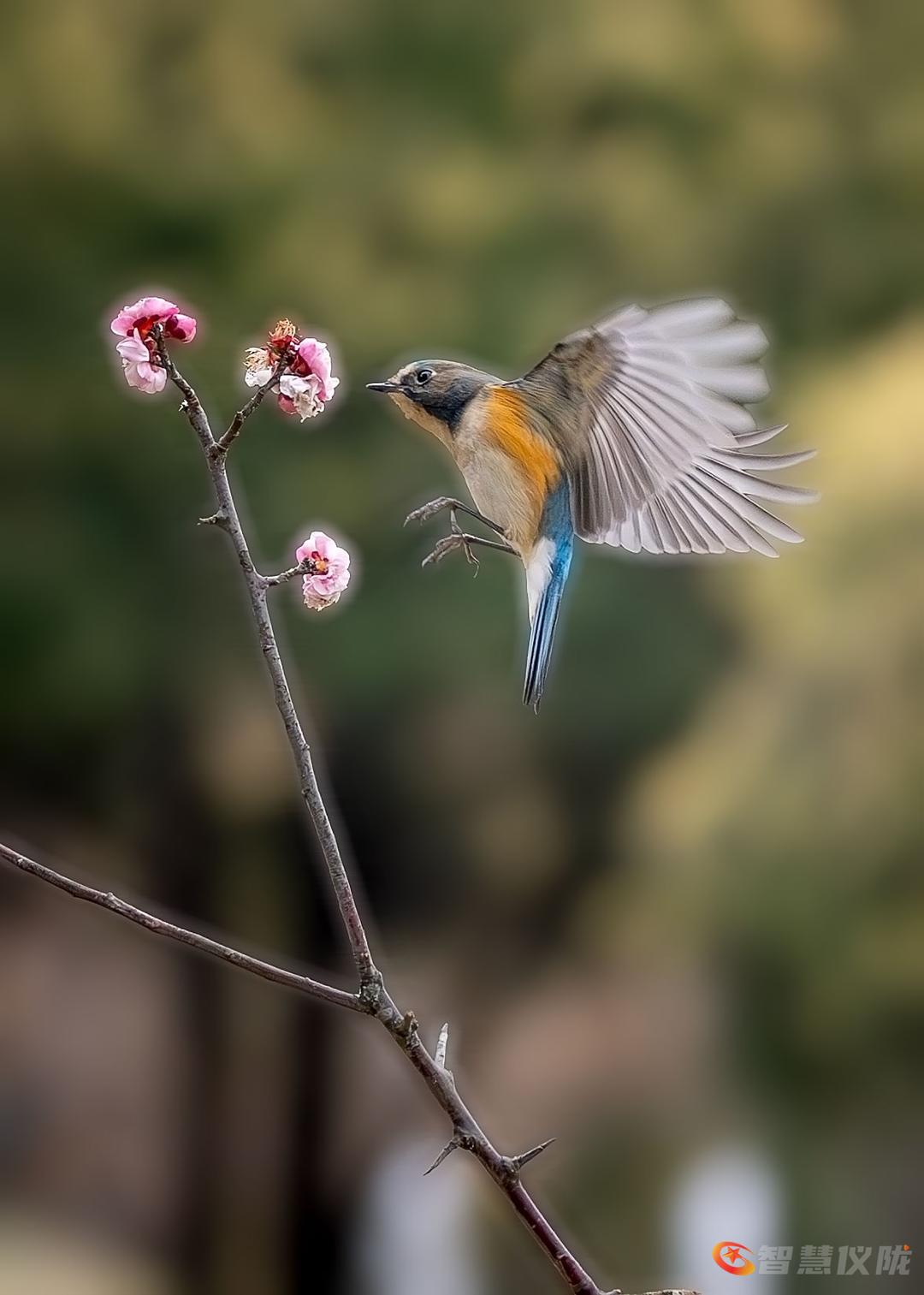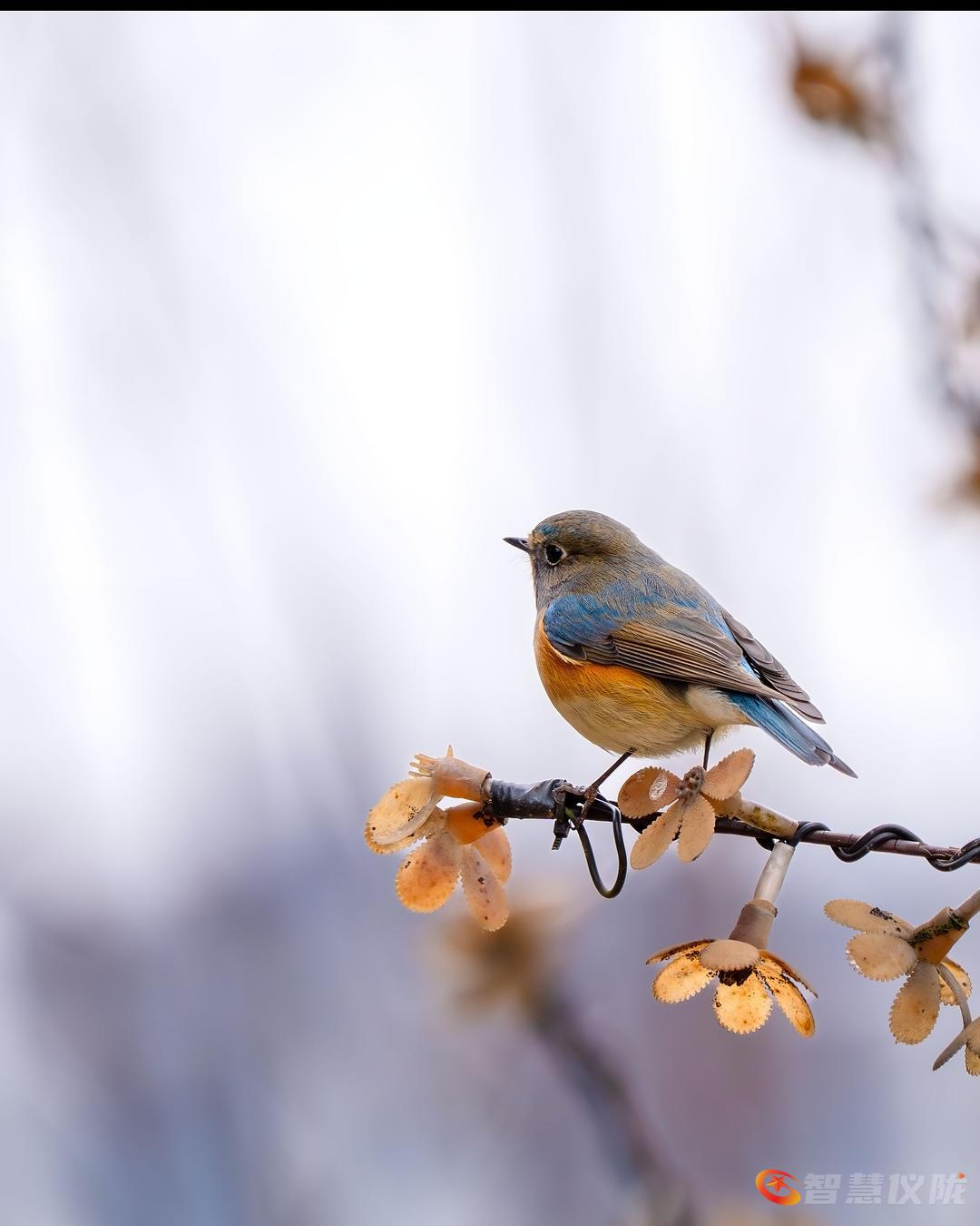 红胁蓝尾鸲(学名:Tarsiger cyanurus),外观特征:雄鸟上体蓝色,眉纹白,两胁橙红色,腹部及臀部白色,尾羽蓝色。- 行为姿态:常于灌丛、枝头活动觅食,停歇时会上下摆尾的习性特点。- 分布与栖息:红胁蓝尾鸲迁徙季节和冬季会出现在低山丘陵、山脚平原的次生林、林缘疏林、道旁溪边灌丛,甚至果园、村寨附近。
