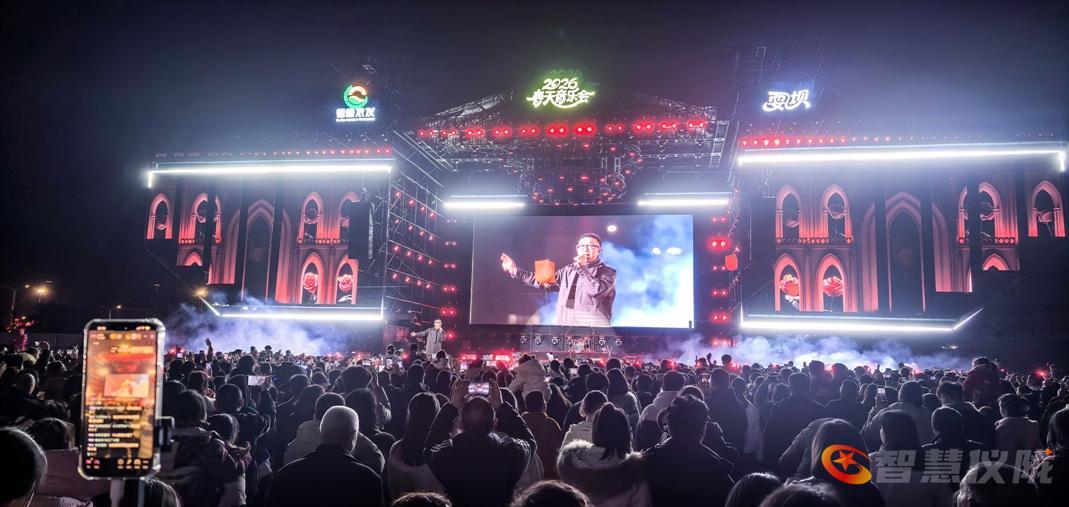 晚8时30分,大型文艺演唱会开场,歌手庞龙登台演唱《两只蝴蝶》《你是我的玫瑰》等经典歌曲,引发全场观众共鸣。