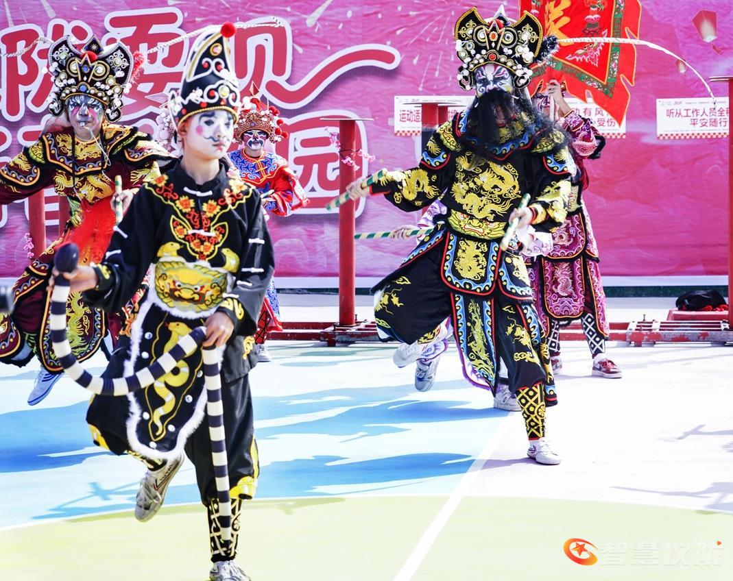 潮汕英歌舞是广东省一种具有独特地方色彩的民间舞蹈,起源于古代英歌庙会,集舞蹈、戏曲、武术、音乐于一体,被誉为“中国舞蹈的活化石”。该舞蹈通常由108名表演者组成,舞者手执木槌,在锣鼓节奏中变换单行、双行、多行及方阵等多种队形,整体表演节奏明快、气势磅礴。演出过程中,舞者还融入潮汕民歌小调演唱,增强了表演的丰富性。