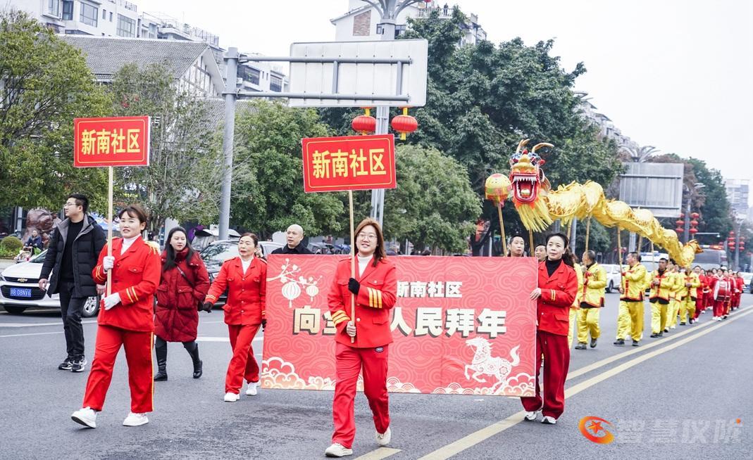 活动于当天上午从行政中心广场开始,巡游队伍途经宏德大道、滨江大道,最终抵达红色经典广场。表演方阵由各社区群众文化队伍组成,每个方阵人数控制在50至80人。南门社区的鼓队、临江社区的腰鼓方阵、新南社区的舞龙与旗袍秀、东门社区的军鼓队与钱棍表演、狮子社区的花环队等相继亮相。