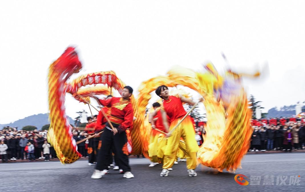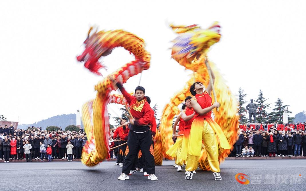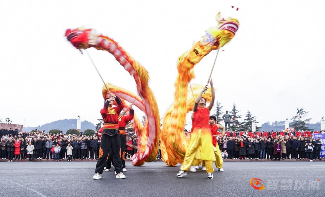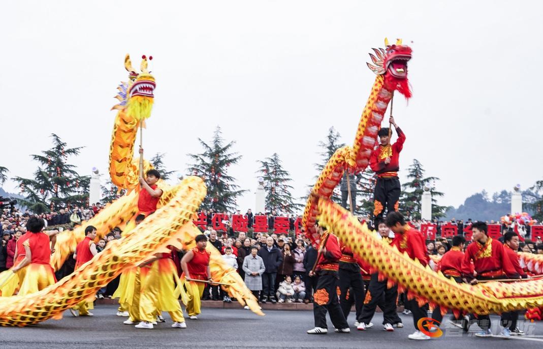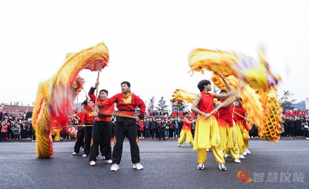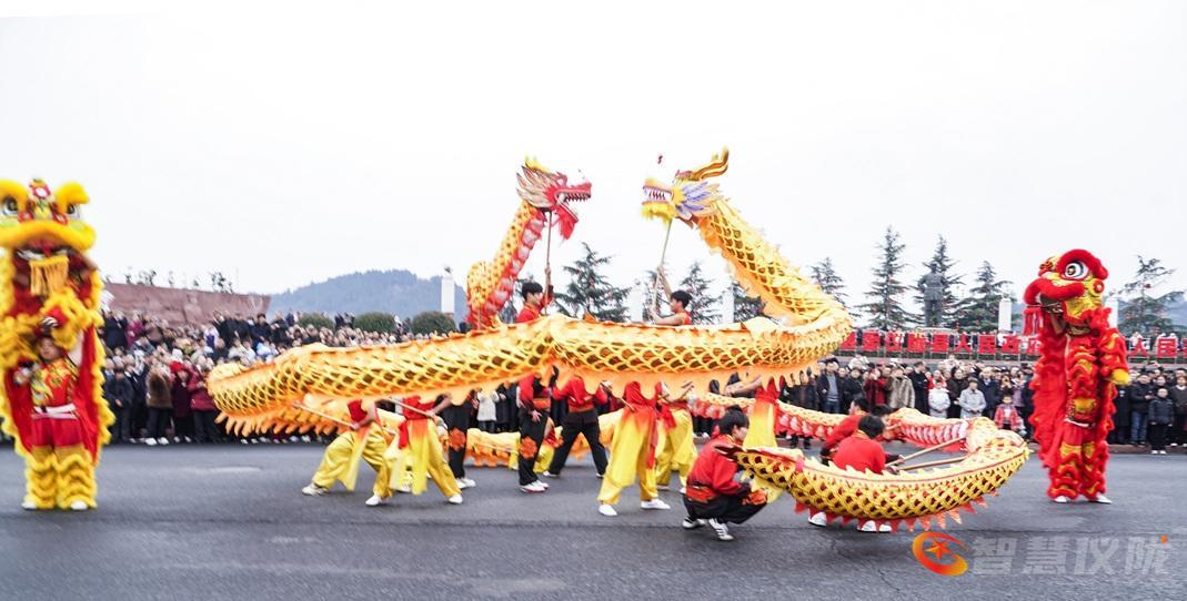 仪陇县省级非物质文化遗产项目“金龙舞”的表演尤其引人注目,五彩金龙在舞动中展现出欢腾跳跃的形态。