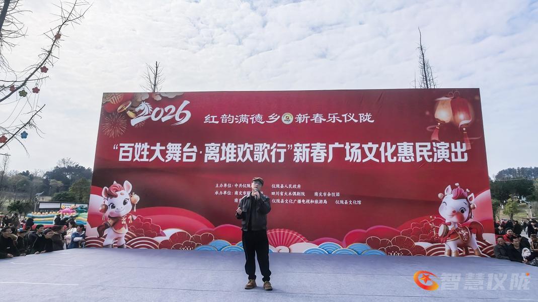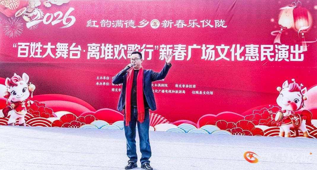 金马献瑞,万象更新。1月17日(农历正月初一)上午,四川省仪陇县德园文化广场上人头攒动、欢歌如潮,“百姓大舞台 离堆欢歌行”新春广场文化惠民演出在此火热开演。活动以“红韵满德乡 新春乐仪陇”为主题,由中共仪陇县委、仪陇县人民政府主办,县文化广播电视和旅游局、县文化馆携手南充市歌舞剧院等文艺团体倾情呈现,为当地群众献上了一台接地气、有温度的新春文化大餐,吸引了千余名市民现场观看。