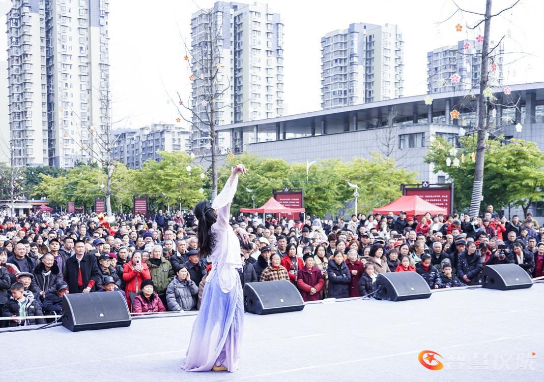 上午10时,演出在曼妙的舞蹈《浓妆淡抹总相宜》中拉开序幕。紧接着,《幸福欢歌》《仪陇情》等节目轮番登场,演员们身着喜庆的服装,踩着明快的节拍,瞬间点燃了现场气氛。