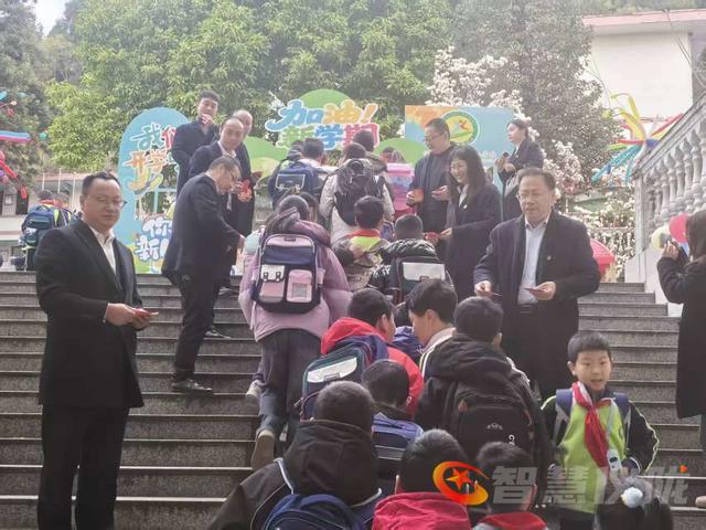 仪式现场精心布置、暖意融融,鲜艳的迎新横幅迎风招展,主题展板图文并茂,校园的每一个角落都洋溢着温馨喜庆的氛围,处处传递着学校对学子们的热切期盼。上午8时整,仪式正式拉开帷幕,学校行政领导班子身着统一服装,整齐列队等候在校园门口,以饱满的精神状态、亲切的笑容,迎接每一位返校的学生。见到归来的学子,领导们主动挥手致意、微笑问好,与同学们亲切击掌互动,一句句“欢迎回家”“新学期加油”,温暖了每一位学子的心房。同时,领导们还为同学们送上精心准备的“马到成功”书签和开学祝福卡,小小的礼物承载着学校的关怀与期许,寄托着对同学们新学期学业进步、前程似锦的美好祝愿。在“马到成功”主题签到墙前,同学们纷纷贴上专属小马胸章、留下青春签名,展现出新时代少年“众马奔腾、奋勇争先”的昂扬姿态。师生温馨交流,交流假期生活,送上新学期寄语,现场暖意融融。学校班子还通过视频形式,向全体学生送上集体祝福,勉励大家以梦为马、勤学奋进,以昂扬姿态开启新征程。