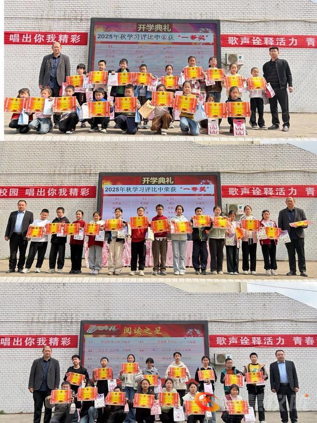 表彰先进,砥砺前行。教务处依次对上学期一至九年级学习优秀学生进行表彰颁奖,并隆重颁发全域悦读·阅读之星、阅读达人奖项,鼓励全体学生以书为伴、勤学善思。政教处同步表彰五好学生、优秀学生干部、德育之星、美育之星、体育之星、劳动之星,树立德智体美劳全面发展的校园榜样,营造比学赶超、争先创优的良好氛围。