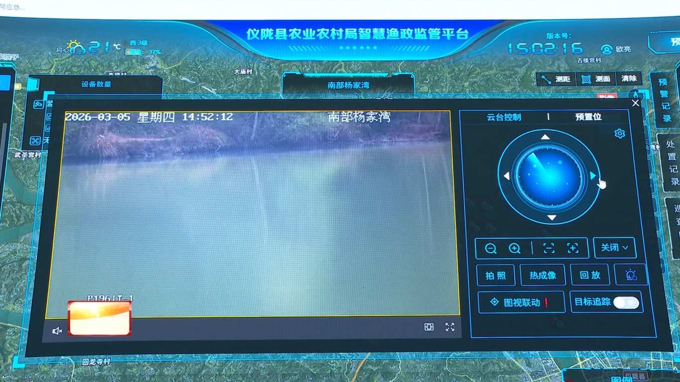 在强化“人防”织密防控网的同时,我县积极向科技要战力。通过智慧渔政监管平台,禁渔巡查装上了“千里眼”。记者在县农业综合行政执法大队监控中心看到,大屏幕上实时显示着各个重点水域的画面。一旦发现疑似非法捕捞或违规垂钓行为,系统便会自动预警,并将信息同步推送到一线执法人员的手机上,实现了“发现—预警—处置”的闭环管理。