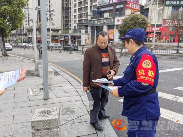 笔者在“首座”、“星城天樾”……等小区大门前,见到飞豹队员们在小区保安的大力配合下,对小区进出的市民进行宣传讲解,发放宣传资料,同时还在街道上的红绿灯路口,对过往的行人进行宣传讲解。队员张明花,能说会道,她在红绿灯路口,给过往的行人,进行了细致的宣讲,对老年人讲解得更细,深受市民的好评。