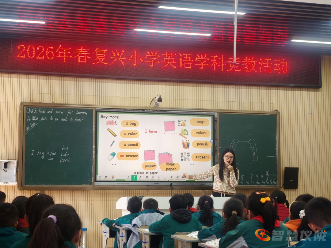 本次英语学科竞教活动聚焦三年级下册“Tools and senses for learning”主题,参赛教师紧扣“学习工具”核心,围绕bag、ruler、pencil等核心词汇与“I have a...”重点句型创设真实教学情境,通过实物演示、课件展示、音标教学等多元方式,设计“Say more”“Look and say”等趣味互动环节,整合多模态教学资源,引导学生在语境中感知、运用语言,打造生动高效的英语课堂。