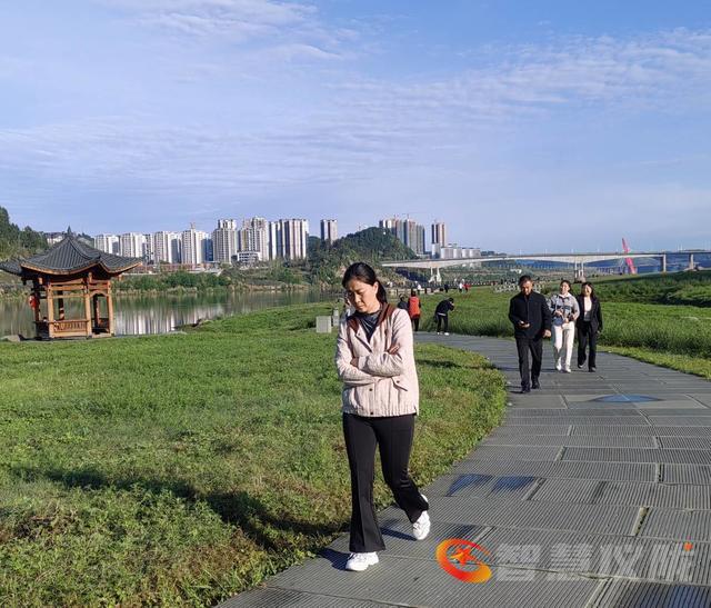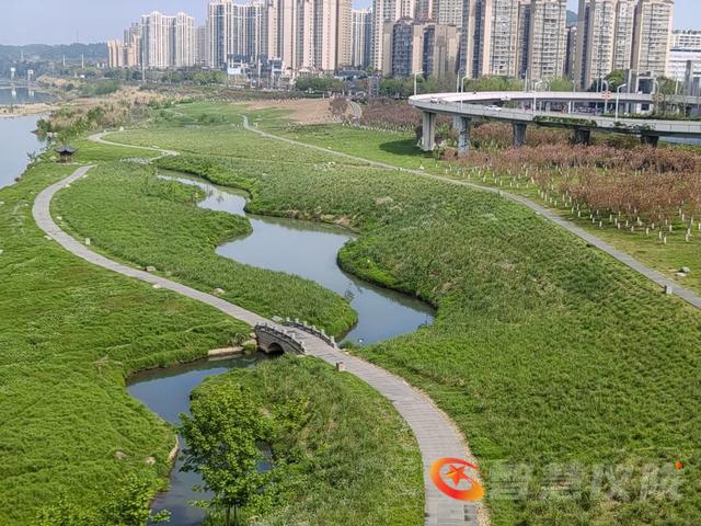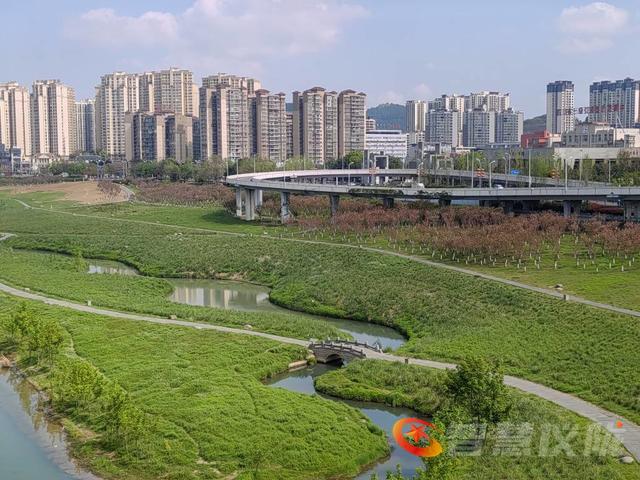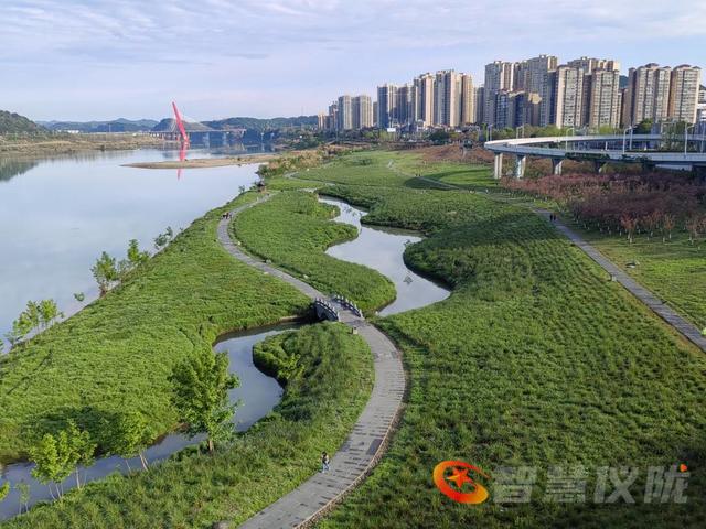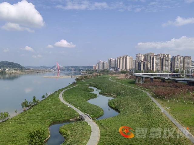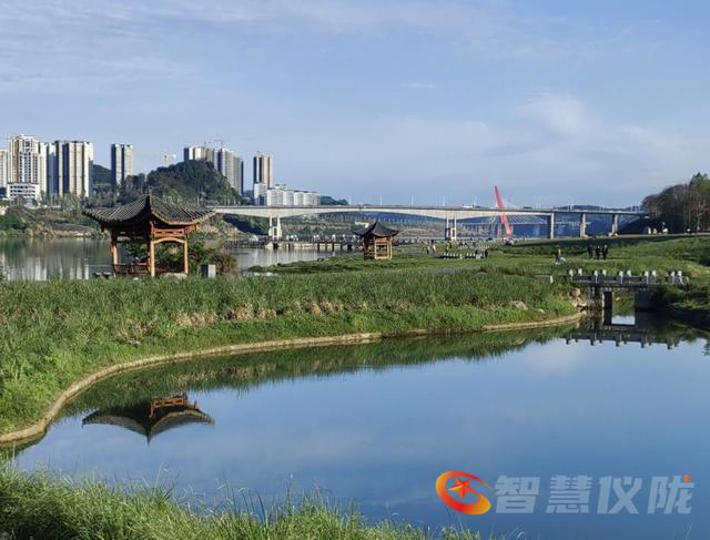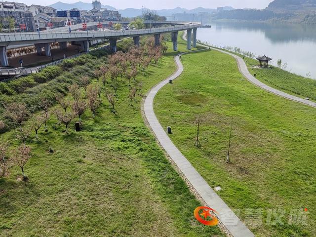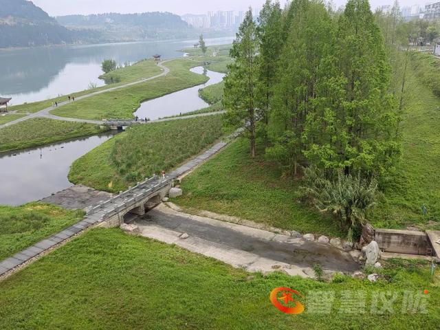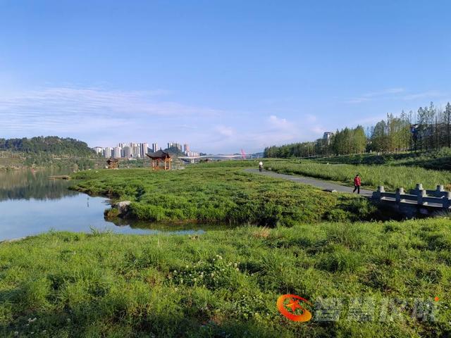暖阳高照,碧空万里,蔚蓝的天空,时而飘过朵朵白云,蓝天白云映衬下的秀水长滩公园,被春天换上了绿色的盛装,色浓重彩,把秀水长滩渲染得无比壮丽。