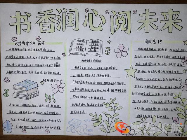 活动自3月19日启动以来,同学们热情高涨,或独立创作,或四人小组合作,围绕名人读书故事、好书推荐、读书方法谈、读书感悟、诗词天地等板块,精心构思版面、搜集资料、绘制插图。各班教室随处可见学生伏案设计、认真誊写的身影。大家用蓝、绿、黄等清新色调勾勒出报头与花边,配以书本、台灯、钢笔等主题插画,将阅读所得化作一幅幅图文并茂的手抄报作品。