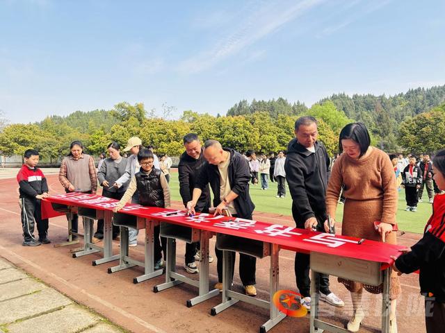 仪式上,教务处宣读活动方案,发出家校共读倡议;学生代表以稚嫩之声,许下与书为友的诺言;刘豪副校长深情寄语,强调读书是乡村孩子连接世界的桥梁,愿书香为孩子人生夯实根基;郑安强校长宣布活动正式启动,全体师生在横幅上郑重落笔,以笔墨约定与书相伴。
