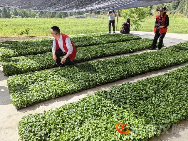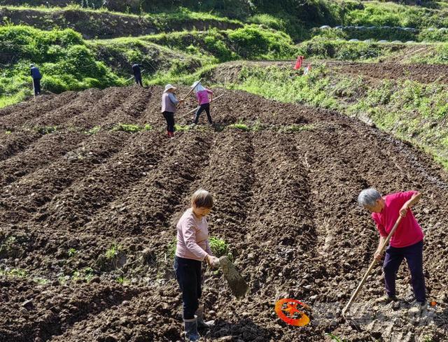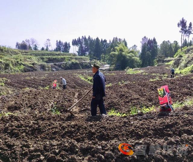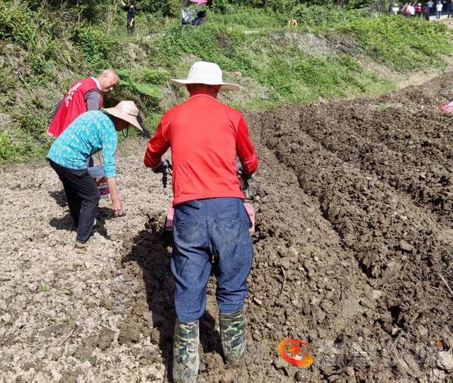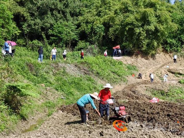 采风团来到杨桥镇的水竹村,首先见到的是春苗青青、小麦茁壮抽穗的美好前景,以及春耕、春播的繁忙景象。旱地里机声隆隆,村民正驾驭着耕土机在地来回翻耕松土。耕土机前行,施肥者紧紧跟进。翻耕后的土地里,众多村民正忙碌地挖沟刨厢,为植苗作准备。