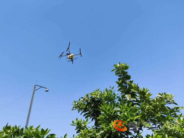 继儿记者和摄师们又来到柑橘园,一片翠绿的橘园里,橘树上不是挂满了沉甸甸的果子,而是开满了洁白的花朵,橘花一团团一簇簇,挤满了橘树,成群的蜜蜂在花间飞舞,橘花的香气沁人心脾,这繁多的橘花,就象征着累累硕果,丰收在望。此时见到大型无人机在空中飞旋,为防止病虫害,正在为橘树喷药杀虫灭菌。