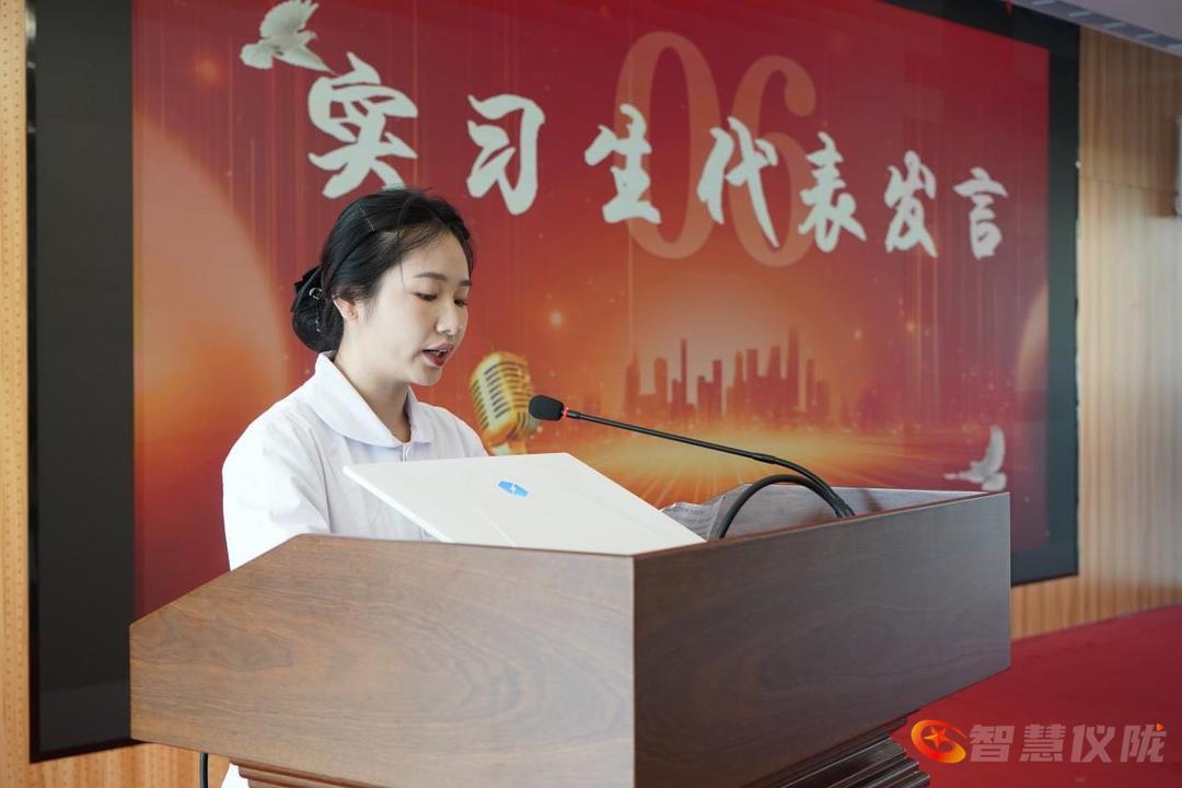 随后,实习生代表发言,表示将秉持所学所悟,坚守护理工作的初心,奋力成为兼具人文关怀与专业技能的护理工作者。同时,分享了从茫然无措到应对自如的成长过程,表达对医院以及带教老师的感恩之情。